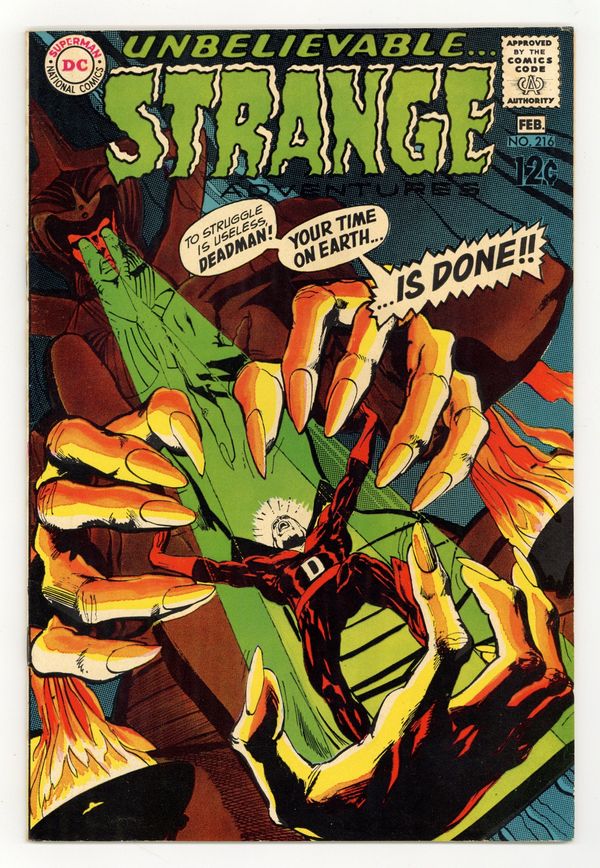Last Deadman story in this title, "But I Still Exist." Art by Neal Adams. This issue has the famous "Hey, a Jim Steranko effect" panel. Reprint back-up story, "I Lost My Past" (art by Mort Drucker). Adams cover. 36 Pages, Full Color. Cover price $0.12.