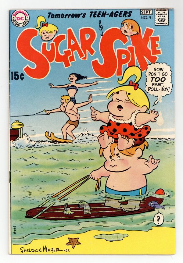 Cover art by Sheldon Mayer. Stories starring Sugar & Spike: Beach Nuts! (S&S go to the beach) and Zelda, the Walking Riot. Scripts and art by Sheldon Mayer. Pint-Size Pin-Ups paper dolls by Mayer. Write Your Own Comic Page! by Mayer. 36 Pages, Full Color. Cover price $0.15.