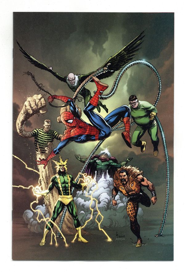 Limited 1 for 50 Retailer Incentive Variant Cover. Written by Nick Spencer. Art by Mark Bagley. Cover by Gary Frank. DOCTOR OCTOPUS IS BACK! AND THE SINISTER WAR HAS BEGUN! Ock's got a new Sinister Six and if you think he's thought big in the past, think again. What Ock DOESN'T know is that the VULTURE has a sextet of his own: THE SAVAGE SIX! It's an all-out WAR between two of the greatest villains in the Marvel Universe, and the only person they hate more than each other is SPIDER-MAN! Spidey's in deep trouble with the toughest battle that he's ever faced. Nick Spencer and Mark Bagley team up for this epic Spider-Man story guaranteed to shock readers everywhere! 36 pages, full color. Rated T+ Cover price $4.99.