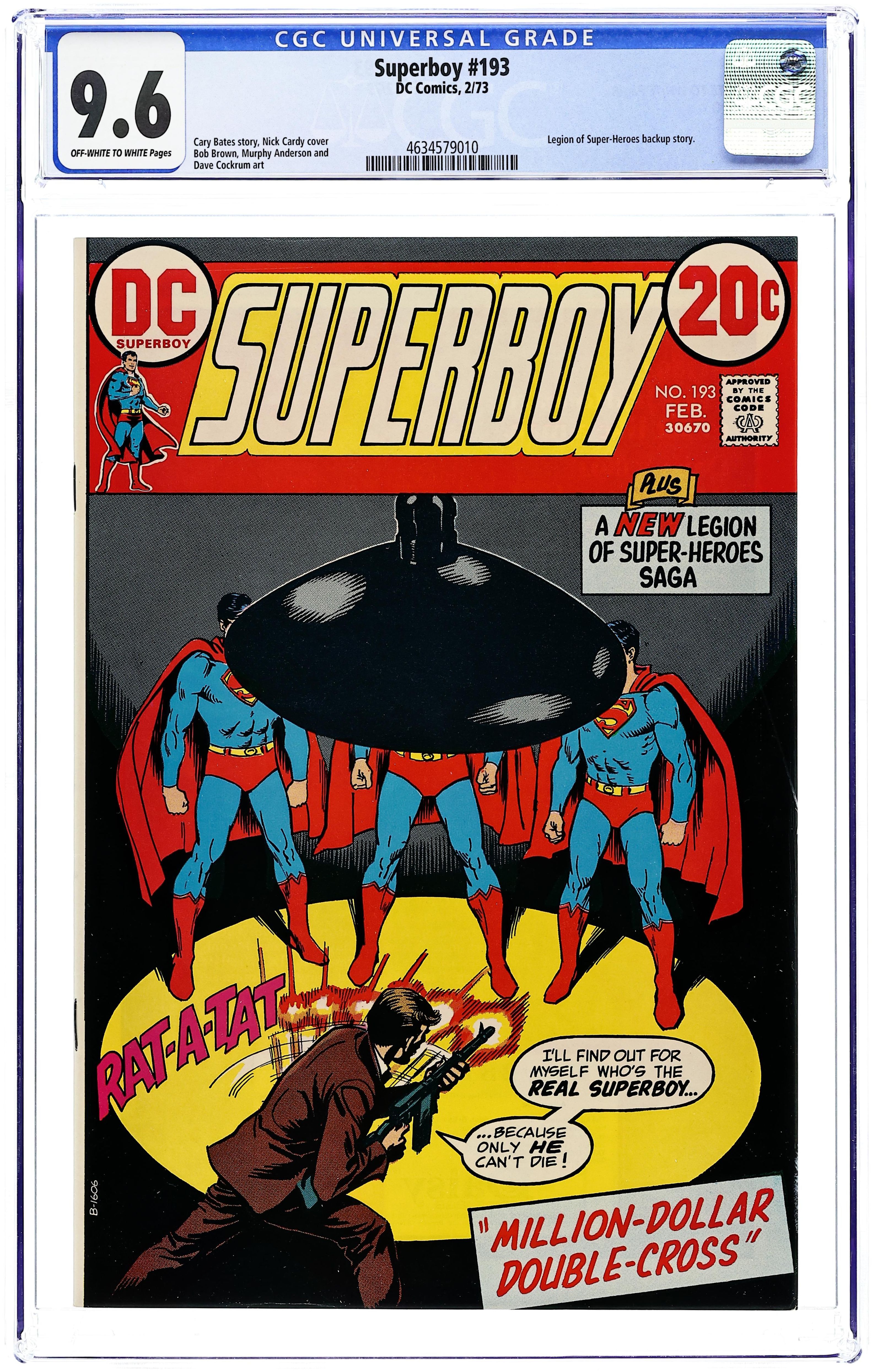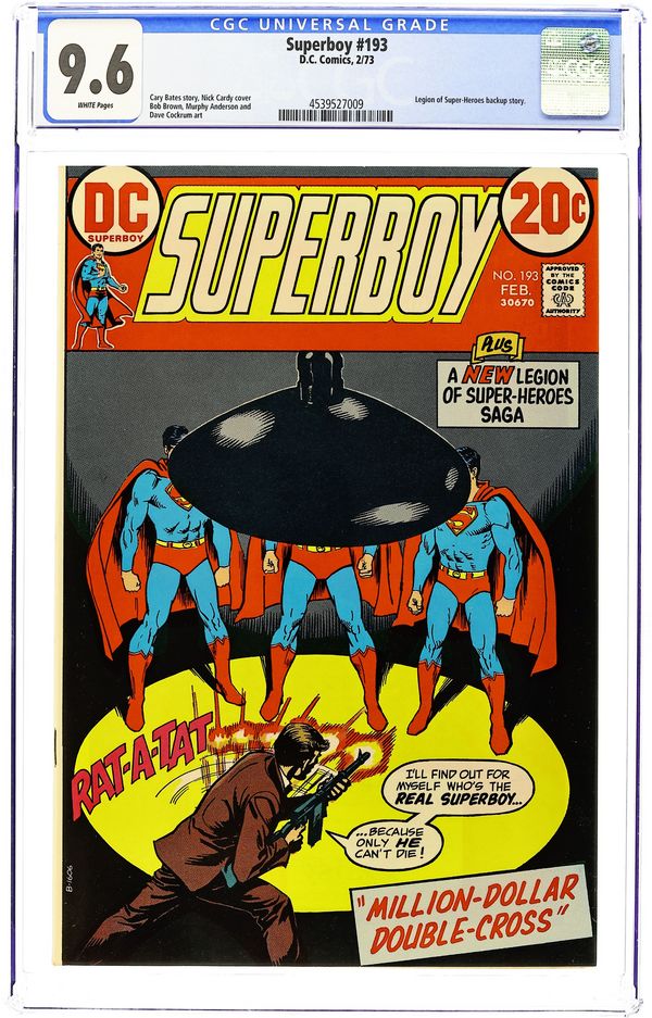 Cover art by Nick Cardy. The Million-Dollar Double-Cross!, script by Cary Bates, pencils by Bob Brown, inks by Murphy Anderson; Pete Ross figures out that a gang leader named Domino is a boarder in his mom's house. War between the Nights and Days!--A New Tale of the Legion of Super-Heroes, script by Cary Bates and Nick Pascale (original idea), art by Dave Cockrum; The Legion has to broker peace between the two factions of planet Pasnic, one of which lives in perpetual sunlight, the other half in perpetual darkness. 36 Pages, Full Color. Cover price $0.20.