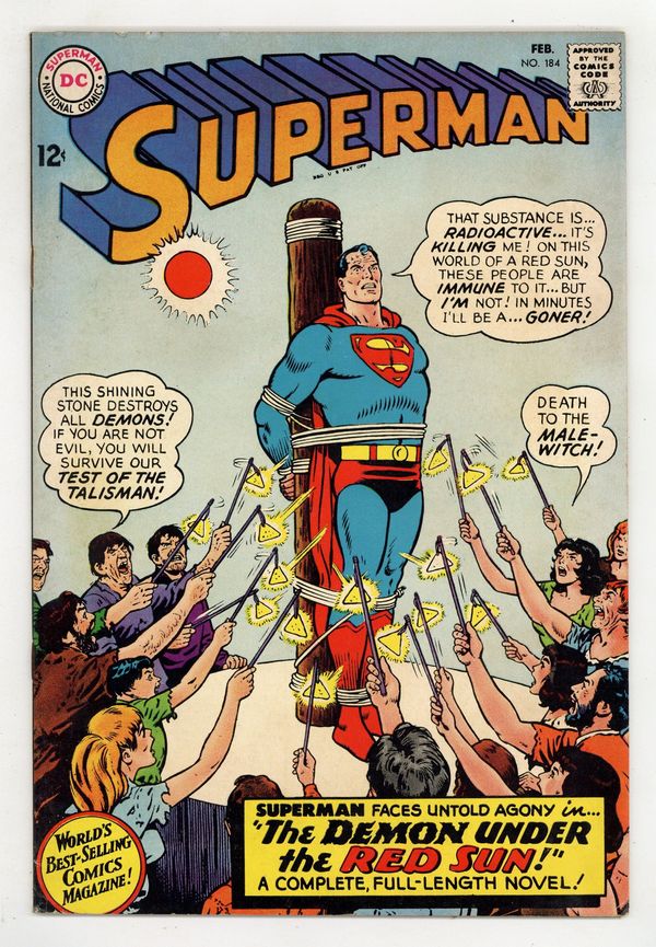 Cover pencils by Curt Swan, inks by George Klein. The Demon Under the Red Sun! starring Superman and Chief Thongarr, script by Otto Binder, art by Al Plastino; Superman is seen as a male witch on a planet with a red sun. The Secrets of the Fortress of Solitude article, art by Wayne Boring. The Test of the Talisman [part 2]. Cap's Hobby Center half-page by Henry Boltinoff. 36 Pages, Full Color. Cover price $0.12.