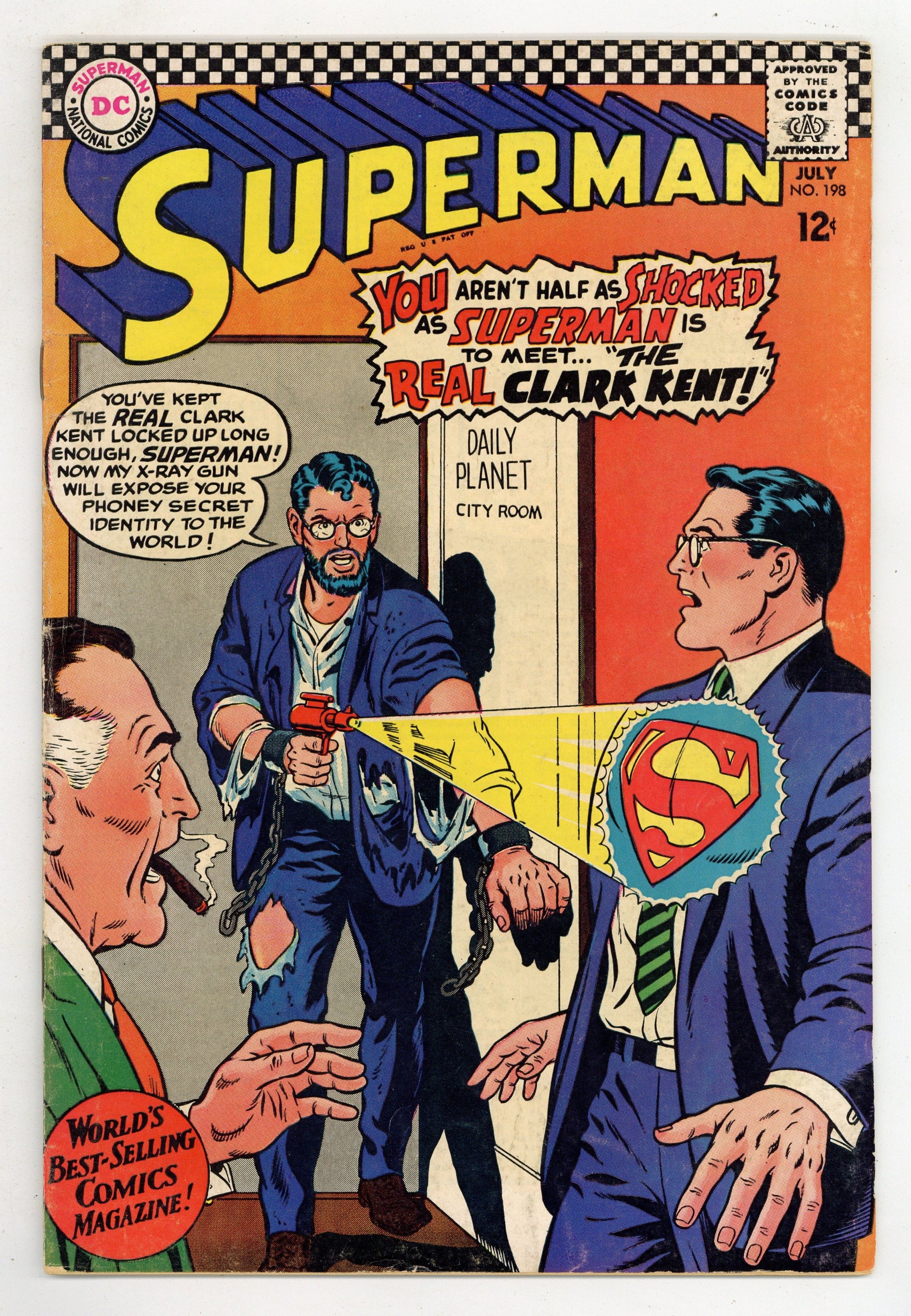 Cover pencils by Curt Swan, inks by George Klein. The Real Clark Kent! starring Superman, the Superman Revenge Squad, Perry White, Lois Lane, and Jimmy Olsen, script by Cary Bates, art by Al Plastino; Superman is shocked to meet the real Clark Kent. Make Your Summer Count! public service announcement. The Fate of the Super-Super-Superman! starring Superman and the Supreme Brain, script by Cary Bates, pencils by Curt Swan, inks by George Klein. 36 Pages, Full Color. Cover price $0.12.