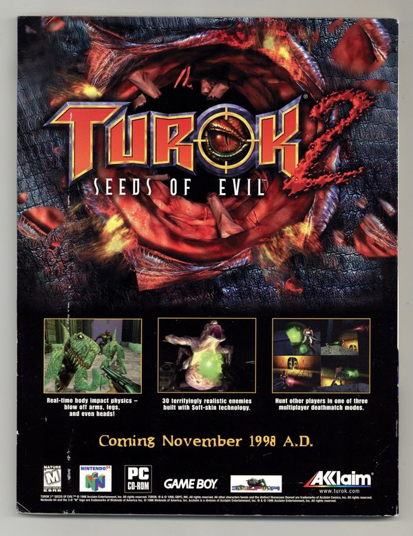 Published Nov 1998 by Nintendo of America.$60.00November 1998. The premiere gaming magazine for all things Nintendo. Each issue features game strategies, reviews and news on video games and related pop-culture. Full Color, 8.25" x 10.75". Cover price $4.95.