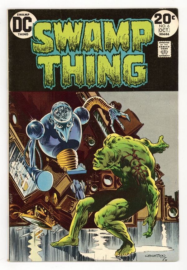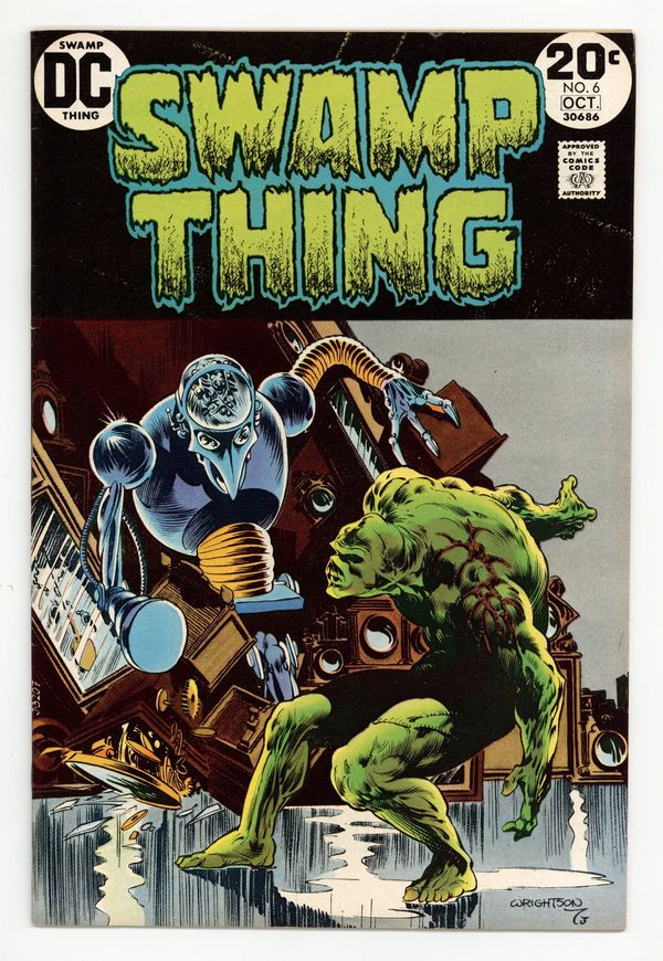 $50.00"A Clockwork Horror." Swamp Thing, Matt Cable and Abby Arcane go to Burgess Town, where humanoid robots (including dupes of Alec and Linda Holland) reside. Script by Len Wein, art and cover by Berni Wrightson.