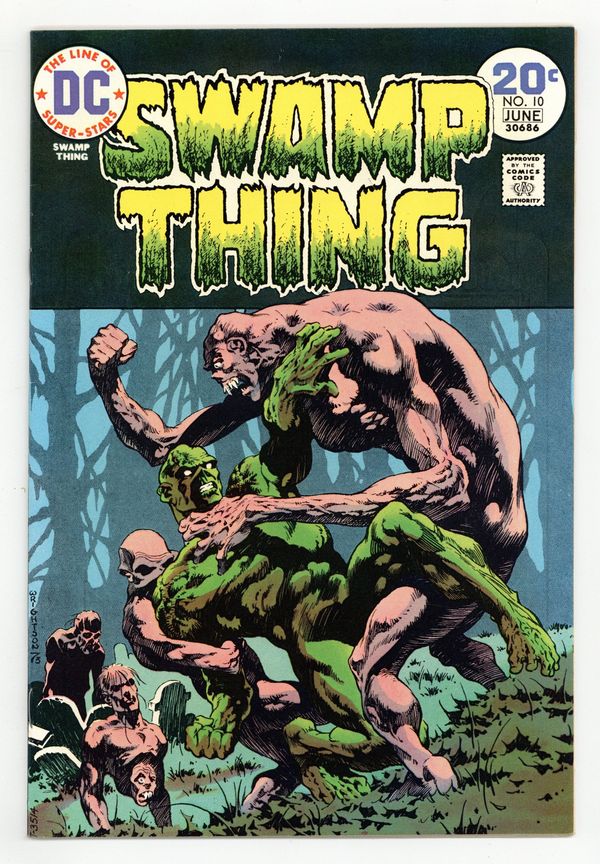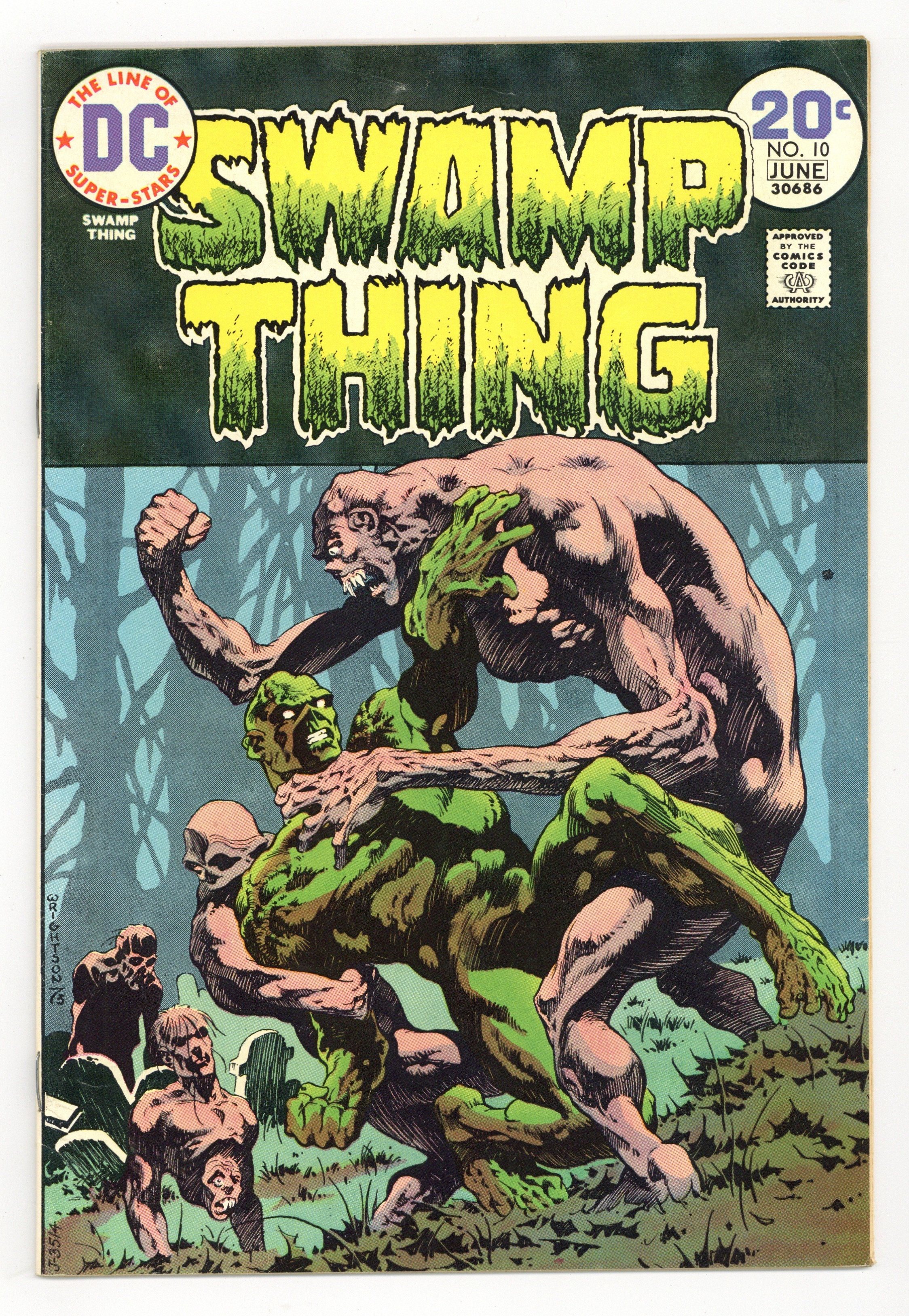 "The Man Who Would Not Die." Swamp Thing rescues an old woman from an escaped convict, and then receives help in spirit form when he goes up against Anton Arcane and his Un-Men. Script by Len Wein, art and cover by Berni Wrightson. Cover price $0.20.
