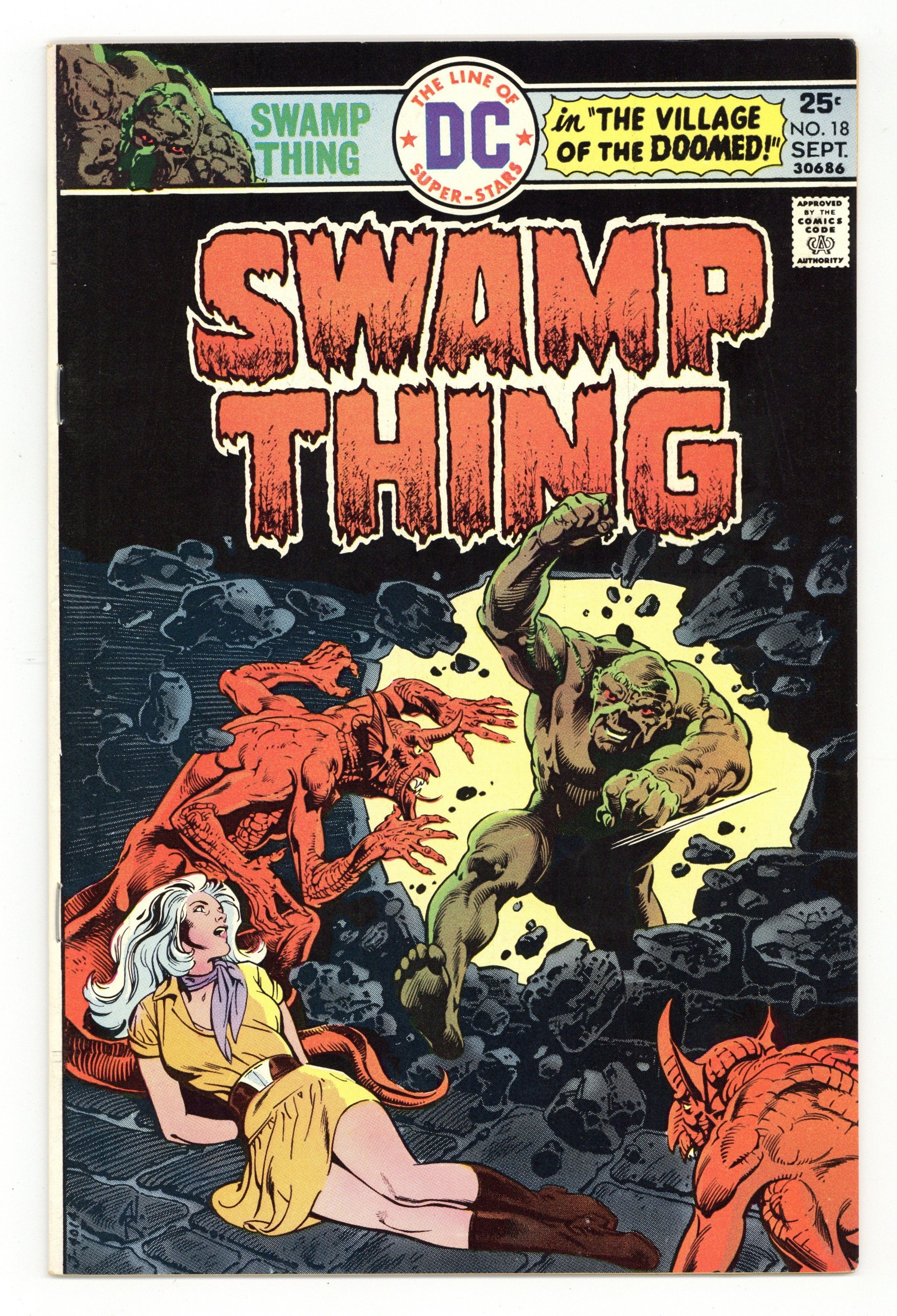 $17.25"Village of the Doomed." Swamp Thing and company encounter Serenity Village, where old people are using black magic to become young again. Script by David Michelinie, art by Nestor Redondo. Cover by Redondo. Cover price $0.25.