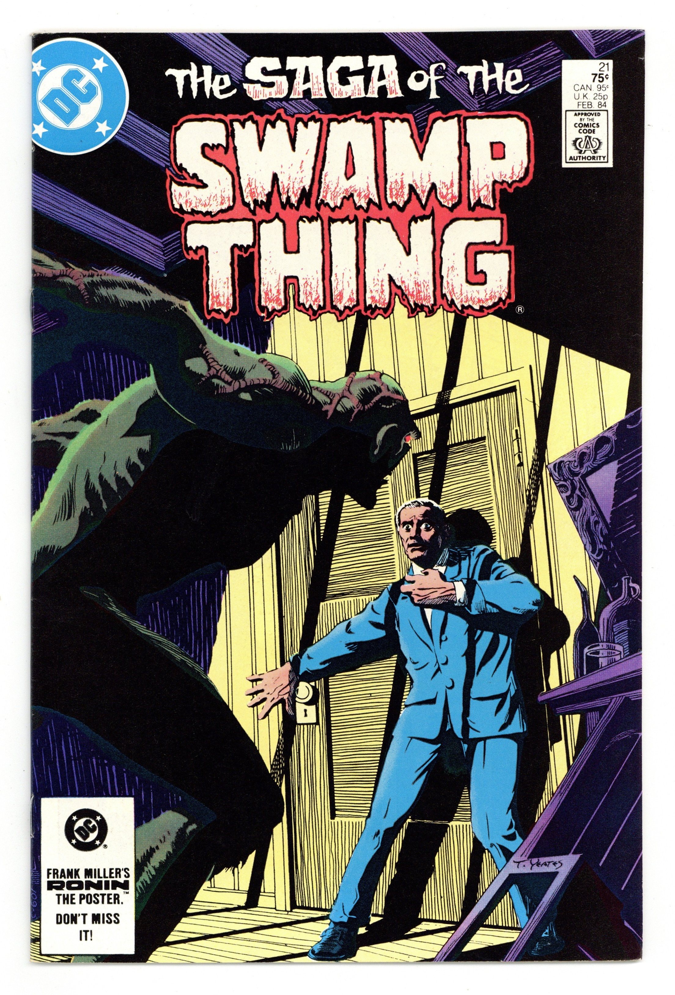 Direct Edition. Cover art by Tom Yeates. The Anatomy Lesson, script by Alan Moore, art by Stephen R. Bissette and John Totleben; General Sunderland hires Jason Woodrue to examine Swamp Thing and determine how Alec Holland became the monster, but Woodrue discovers that Swamp Thing only thinks that he was Alec Holland; When Sunderland fires Woodrue, the scientist allows Swamp Thing to take revenge on Sunderland for the both of them; new origin for Swamp Thing. 36 pgs., full color. $0.75. Cover price $0.75.