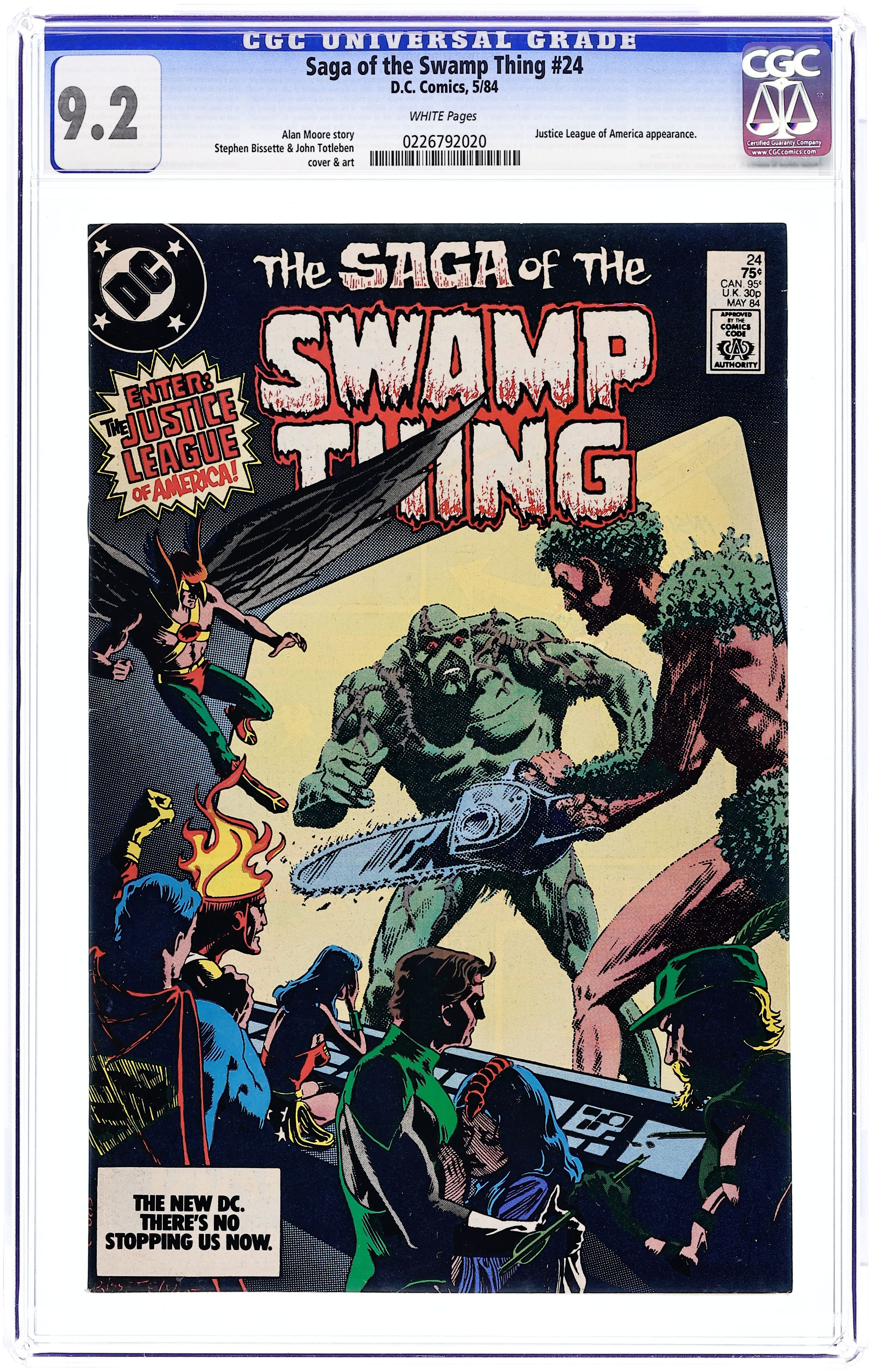 Part 3 of 3 - "Roots!" Guest-starring the Justice League of America. Written by Alan Moore. Art by Stephen Bissette and John Totleben. it's the Swamp Thing vs. the Floronic Man with the fate of mankind hanging in the balance! And as the battle escalates, the JLA decide to take action. 32 pages, FC. Cover price $0.75.