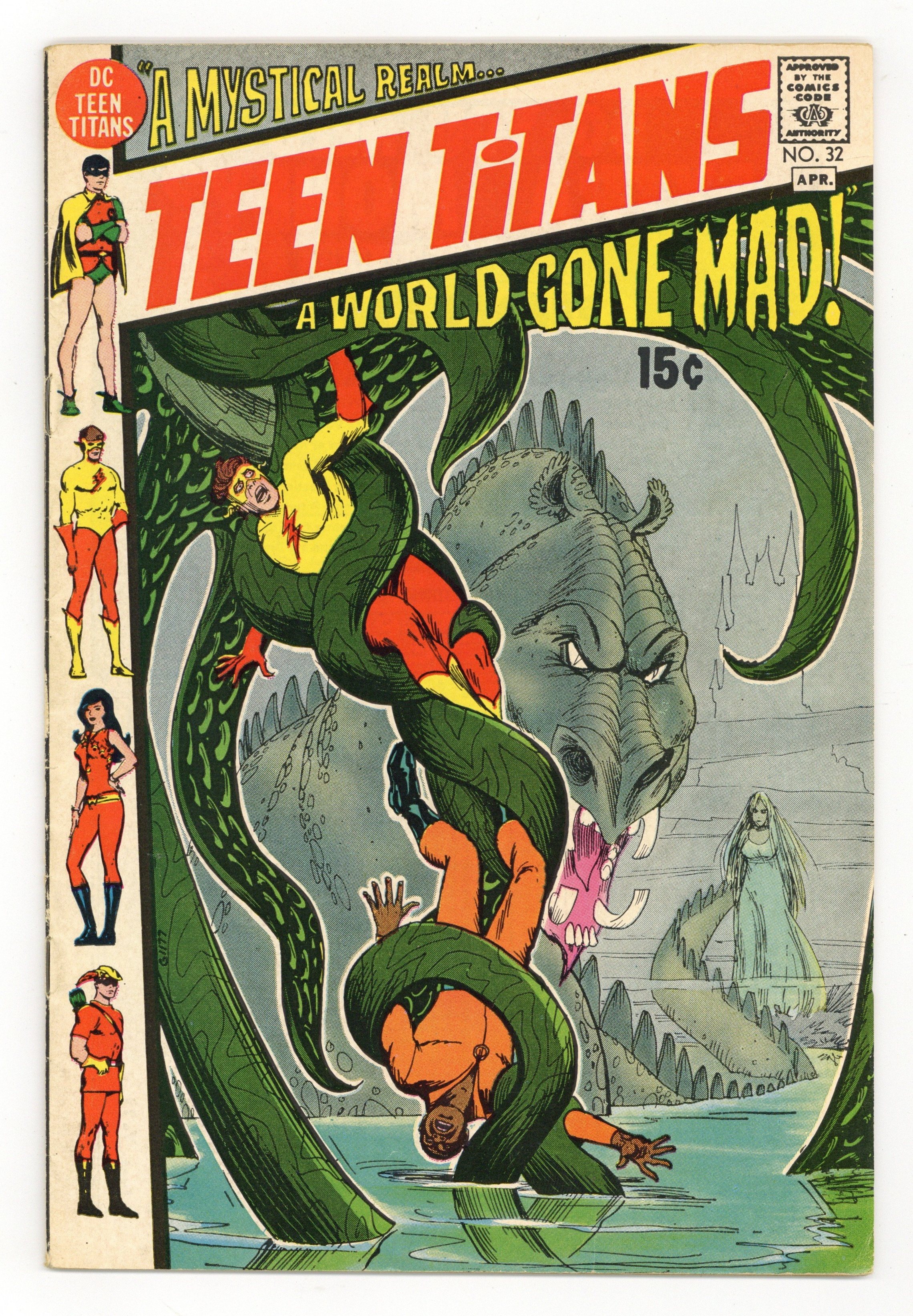 Tags: Teen Titans$9.30Written by Steve Skeates. Art and cover by Nick Cardy. When a time travel experiment goes bad, Mal is trapped in the past and rescued by Kid Flash, but they return to a different present. 36 Pages, Full Color. Cover price $0.15.