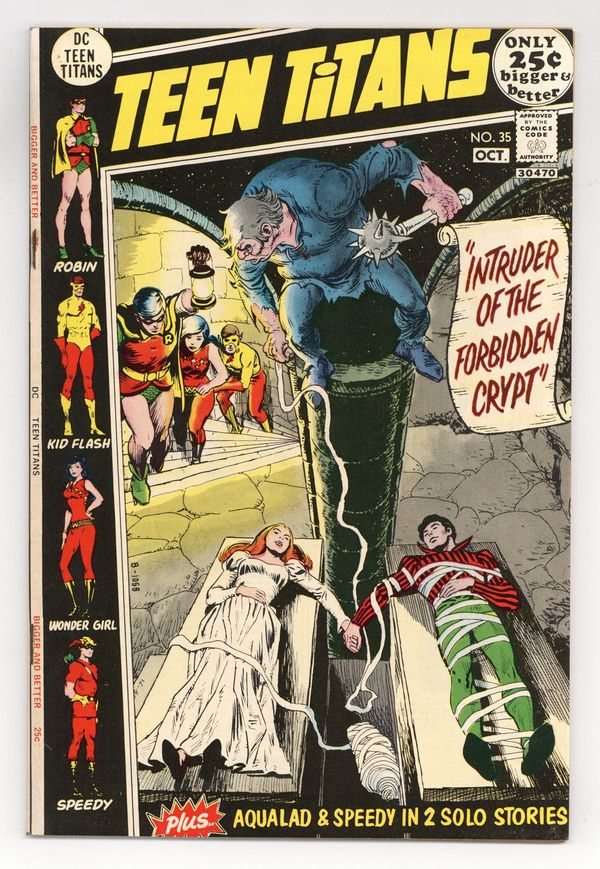Written by Bob Haney. Art by George Tuska and Nick Cardy. Cover by Nick Cardy. The Titans and Mr. Jupiter are in Italy to see the beginning of construction of Jupiter's newest laboratory. Lilith believes she is the reincarnation of Shakespeare's Juliet, and the son of Jupiter's enemy appears to be the reincarnation of Romeo. Written by Bob Haney. Art by George Tuska and Nick Cardy. Mal fights alone against Gargoyle, who has escaped from limbo. Written by Robert Bernstein. Art by Lee Elias. Speedy takes up odd-jobs to raise money for a sailboat. Some crooks try to take advantage of Speedy but he catches onto their scheme. 52 Pages, Full Color. Cover price $0.25.