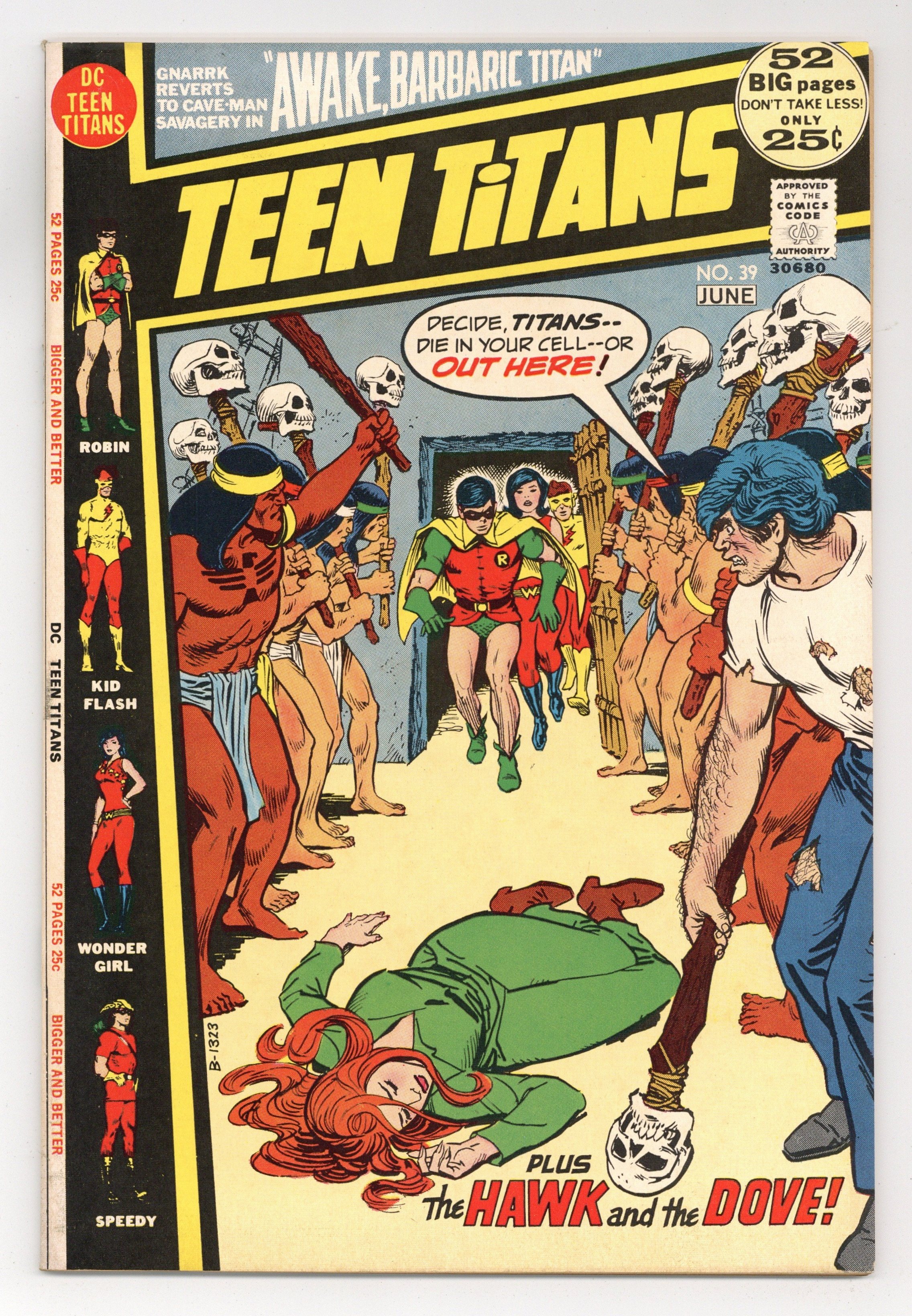 Tags: Teen Titans$12.00Written by Bob Haney. Art by George Tuska and Nick Cardy. Cover by Nick Cardy. The Teen Titans go to the Southwest United States with Mr. Jupiter and find an undiscovered Indian tribe hidden in a mountain valley. Written by Steve Skeates. Art by Gil Kane and Sal Trapani. Both Hawk and Dove try to capture the Cat but neither can capture him. Origin recap of the Hawk and Dove. 52 Pages, Full Color. Cover price $0.25.