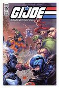 Tags: G.I. JoePublished Aug 2021 by IDW Publishing.$12.00Written by Larry Hama. Art by Andrew Griffith. Cover by Freddie Williams II. 'Murder by Assassination' Part 5! EXPLOSIVE FINALE! Murder, mystery, and mayhem continue as the newest JOE continues her investigation into Cobra chaos. Can she, with the help of some special friends, solve the mystery and save the day before it's too late? The plot thickens as Living Legend Larry Hama and superstar artist Andrew Griffith (Transformers) conclude their bombastic tale featuring the exciting new JOE team member-codename: SHERLOCK! 28 pages, full color. Cover price $3.99.