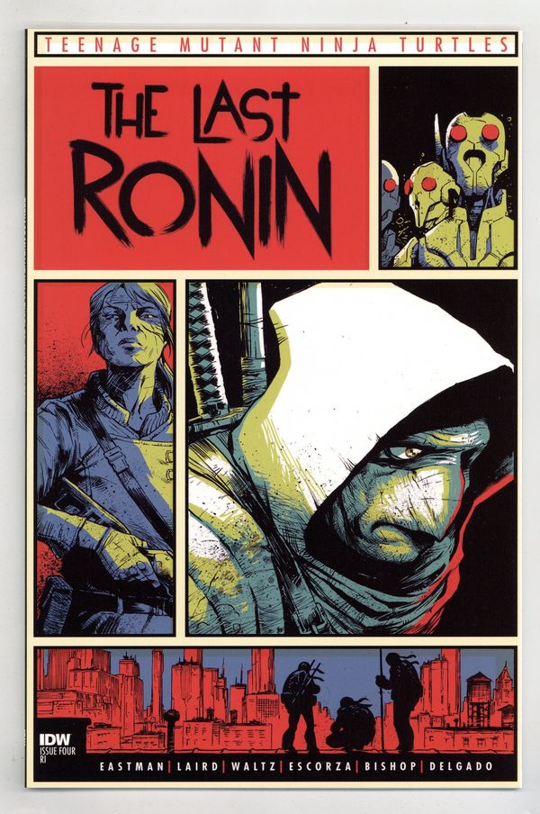Limited 1 for 10 Retailer Incentive Variant Cover. Written by Kevin Eastman, Peter Laird and Tom Waltz. Art by Esau Escorza, Isaac Escorza, Ben Bishop and Kevin Eastman. Cover by Dave Wachter. With a few key allies, the Ronin takes on the greatest risk yet to infiltrate Baxter Stockman's tech island! What happened many years ago to set the Ronin on this quest for vengeance? Find out in this action-packed penultimate issue! 48 pages, full color. Mature Readers Cover price $8.99.
