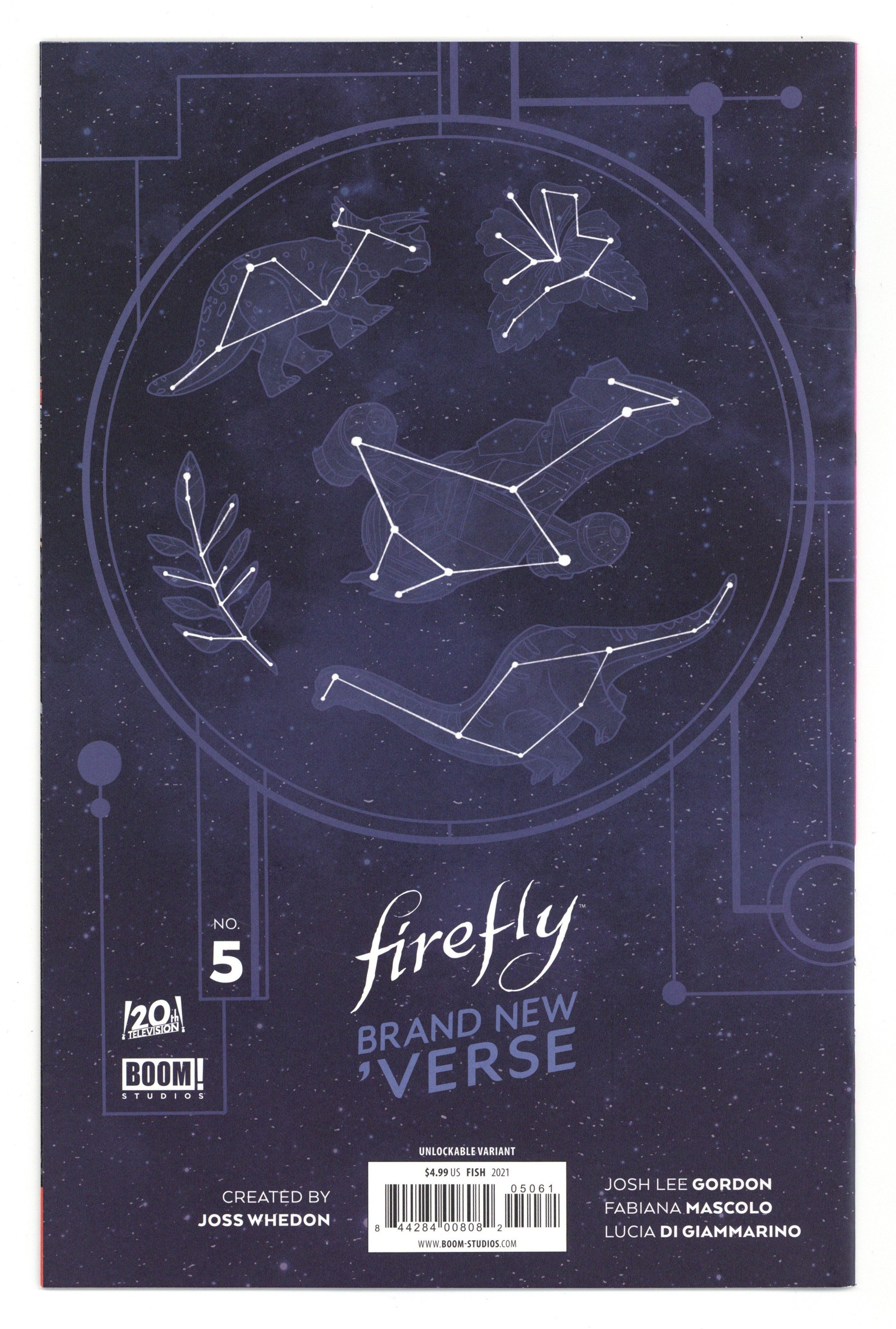 Written by Josh Lee Gordon. Art by Fabiana Mascolo. Cover by Veronica Fish. Emma and the new crew of the Serenity travel to a mysterious asteroid belt seeking help from an old friend, and the only person who can help them. When the crew finds them, Emma will receive news that will force her to choose between her future and her family. But whatever she chooses, the decision will cost her greatly. 24 pages, full color.