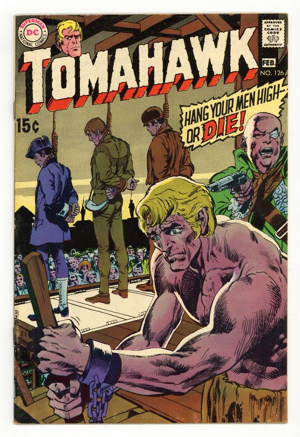 Cover art by Neal Adams. The Baron of Gallows Hill starring Tomahawk, script by Robert Kanigher, art by Frank Thorne. Raids of the Invisible Braves starring Tomahawk, art by Bob Brown; Investigating reports of ghostly raiders, Tomahawk and Dan discover Indians with a potion that will make them invisible. 36 Pages, Full Color. Cover price $0.15.