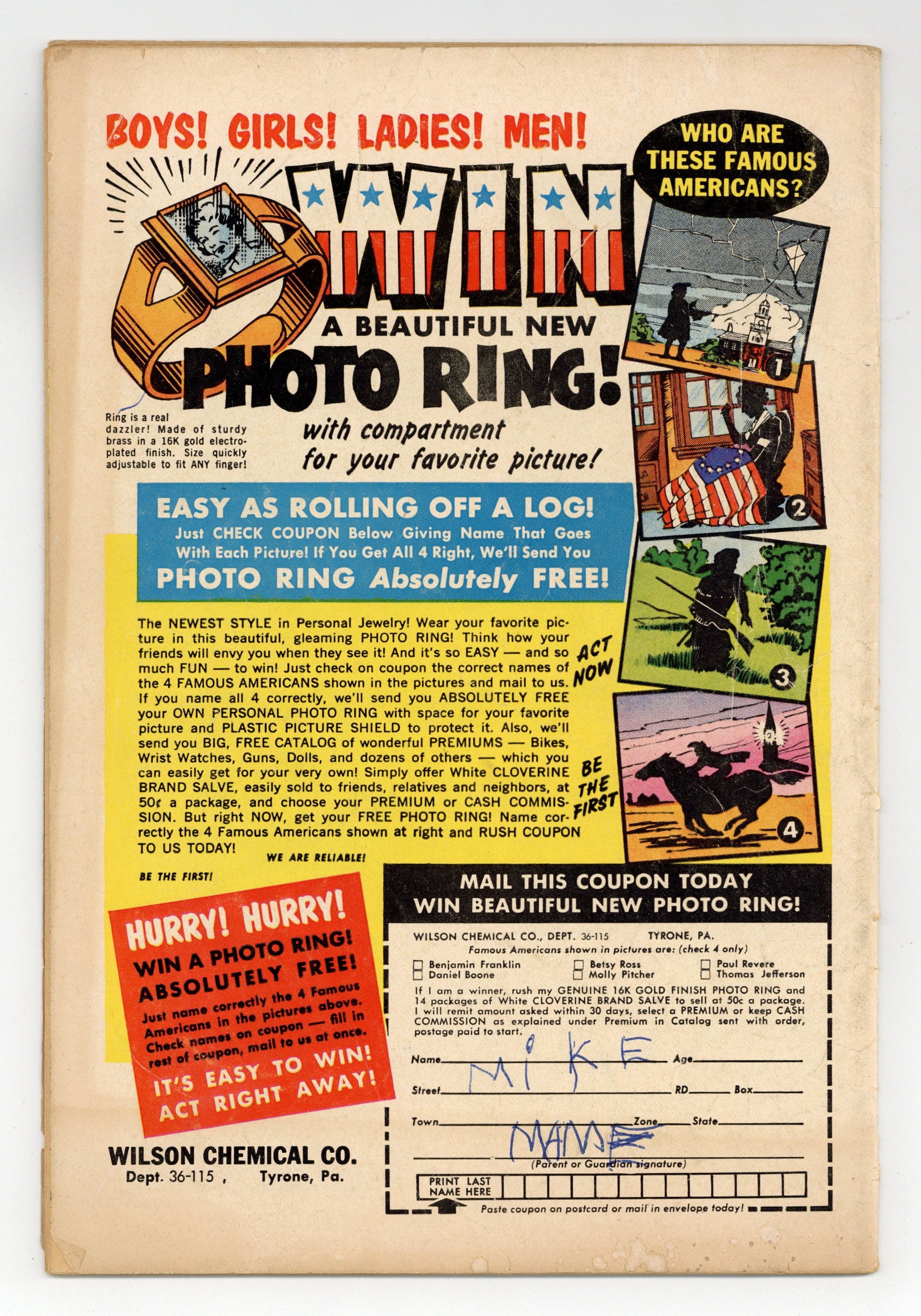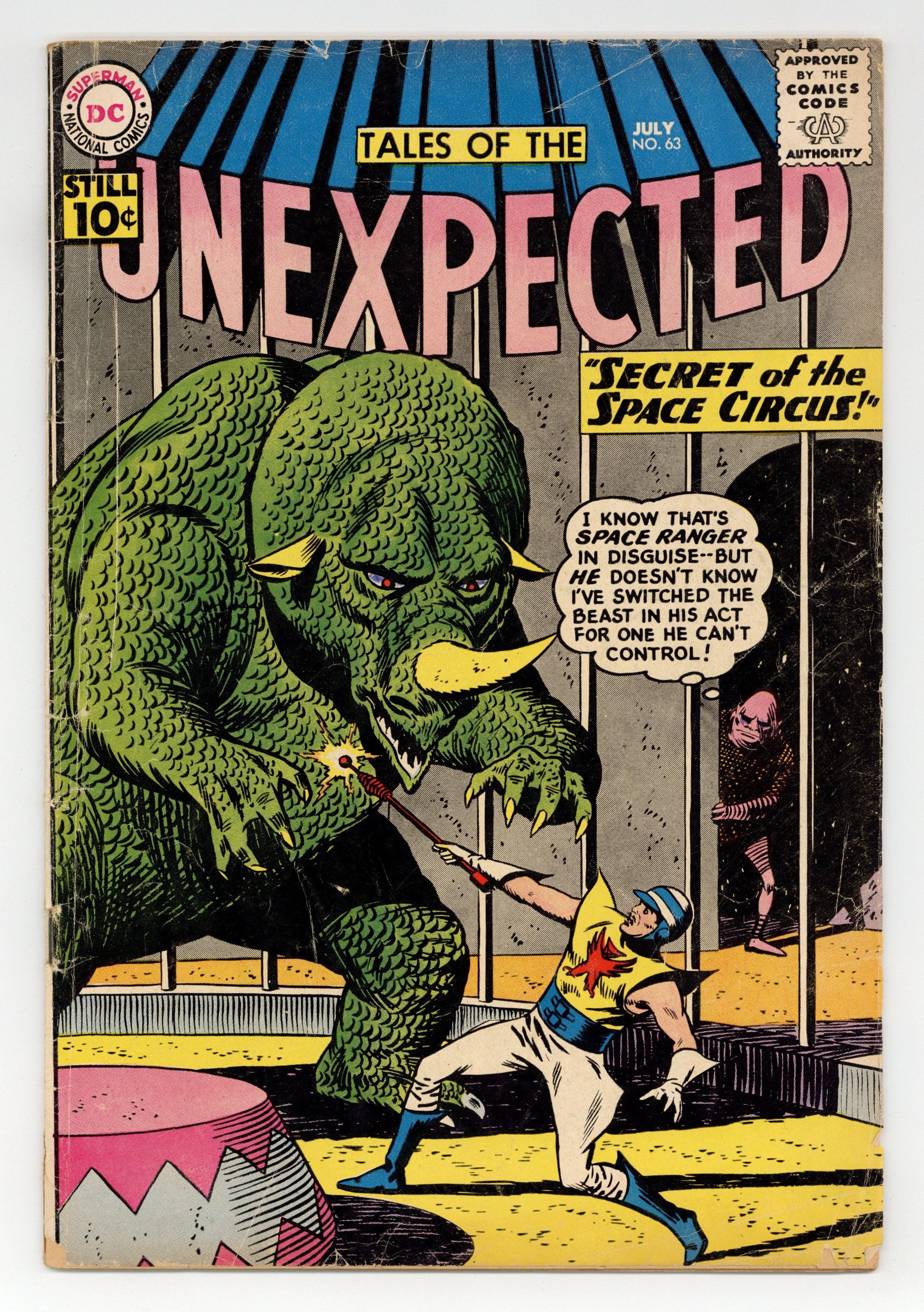 Cover art by Bob Brown. Death to Planet Earth, art by Howard Purcell. Creature Doctor of Space featuring Spaceman at Work, art by George Roussos. The Secret of the Space Circus starring Space Ranger, script by Arnold Drake, art by Bob Brown; Space Ranger disguises himself as a creature in a circus. 36 Pages, Full Color. Cover price $0.10.