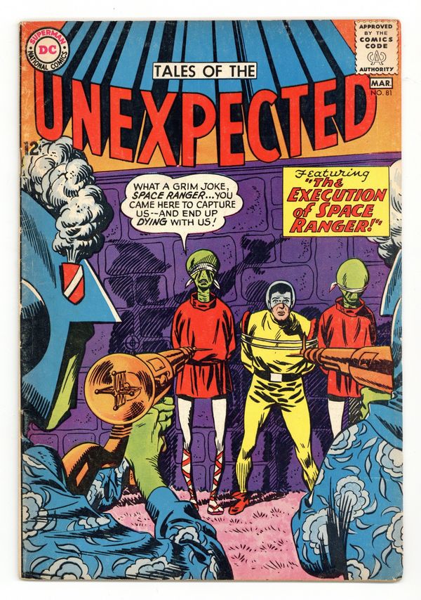 $16.00Cover art by Bob Brown. His Alien Master!, art by Howard Purcell; When an alien saves the life of Frank Scott's wife he demands Frank's help in return; Traveling to the alien planet, Frank learns he now has super-powers, which the alien intends for him to use in helping to overthrow the rightful ruler. House ad for The Brave and the Bold #52, art by Joe Kubert. Earthling -- Go Home, art by George Roussos. On the Planet Og humor page by Henry Boltinoff. The Execution of Space Ranger, script by Arnold Drake, art by Phil Kelsey. 36 Pages, Full Color. Cover price $0.12.