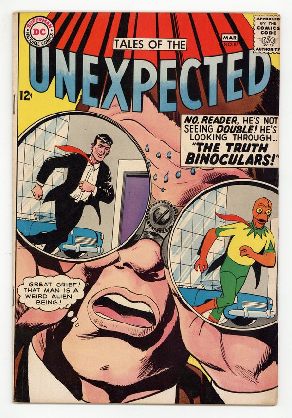 $12.00Cover art by Jack Sparling. Don't Give Fire a Place to Start! public service announcement starring Superboy, script by Jack Schiff, art by Win Mortimer. The Manhunt Through Two Worlds, art by George Roussos; The Green Glob helps a detective track down a thief who is stealing pearls to sell to aliens who can use them for evil purposes on their world. Moolah the Mystic humor page by Henry Boltinoff. The Creature that Went to War, art by Howard Sherman; A strange creature with electrical powers helps a band of rebels overthrow their evil dictator. Article about slot car racing. The Truth Binoculars!, art by Jack Sparling. 36 Pages, Full Color. Cover price $0.12.