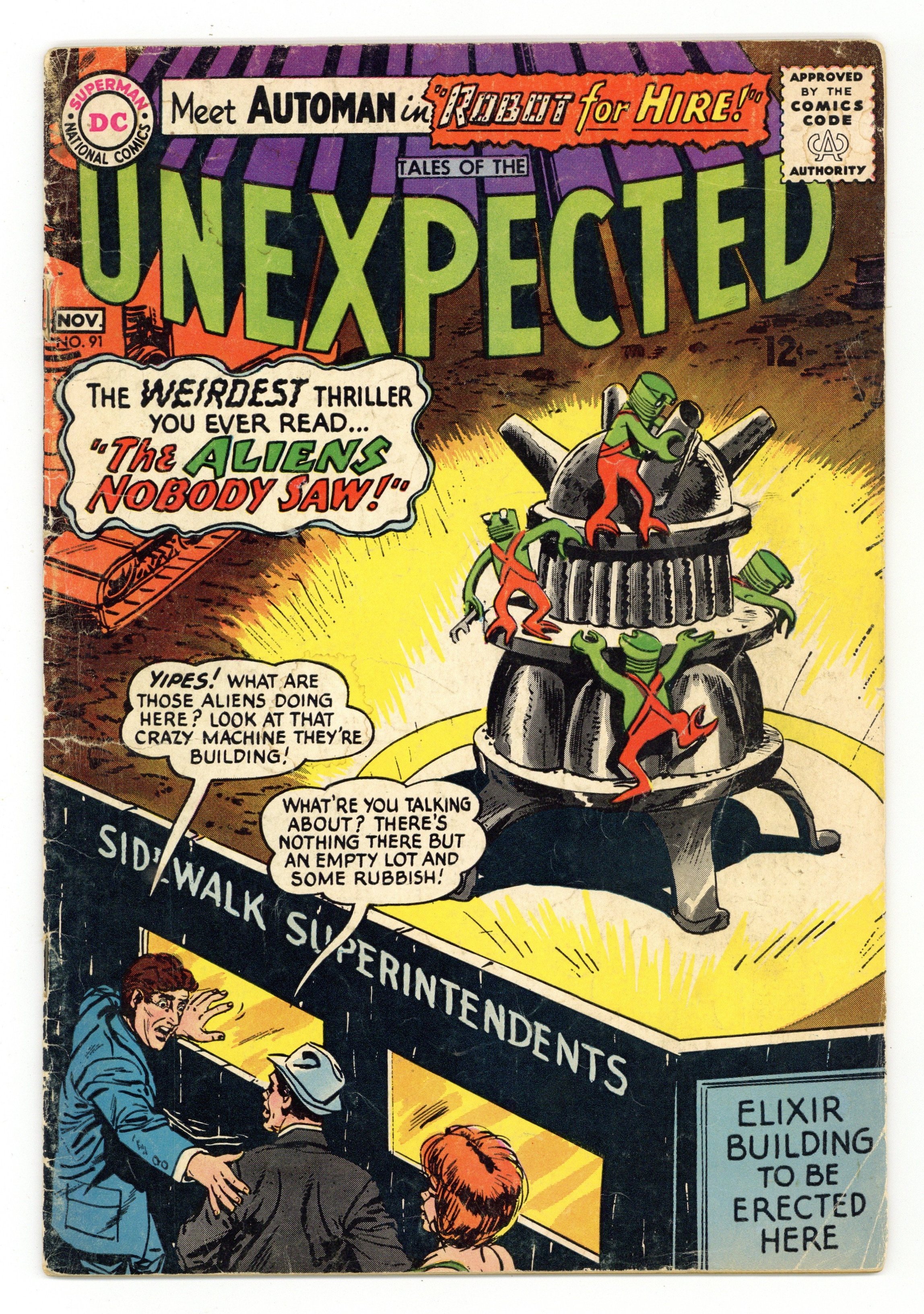 Cover art by Jack Sparling. The Prophetic Mirages, art by George Roussos; Gabe Larson has made millions manipulating the stock market; While he's traveling on an African safari, the Green Glob causes him to see three visions of the future. Peter Puptent Explorer humor page by Henry Boltinoff. Are You a Litter-Bug? public service announcement starring Little Pete, art by Henry Boltinoff. Robot For Hire, art by Lee Elias; Professor Sterling's robot invention, Automan, can be hired for various jobs; Rankin, a smuggler, wants to use the robot for crime. The Aliens Nobody Saw!, art by Jack Sparling. House ad for 80 Page Giant #15, pencils by Curt Swan and Dick Sprang, inks by Stan Kaye. 36 Pages, Full Color. Cover price $0.12.