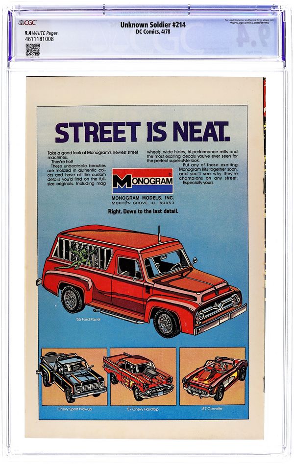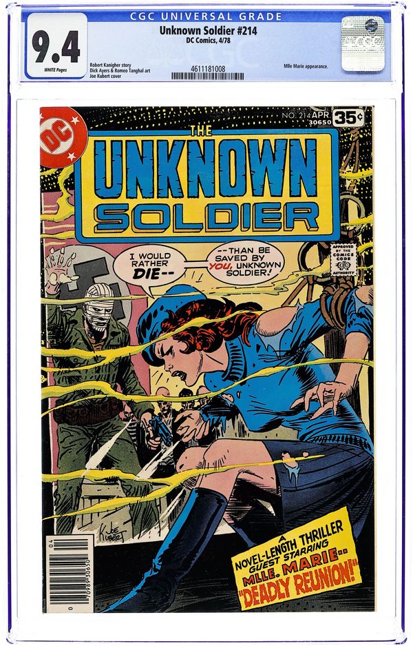 Cover by Joe Kubert. Deadly Reunion!, script by Robert Kanigher, pencils by Dick Ayers, inks by Romeo Tanghal; Unknown Soldier must rescue Mlle; Marie from a Nazi concentration camp. 36 pgs., full color. $0.35. Cover price $0.35.
