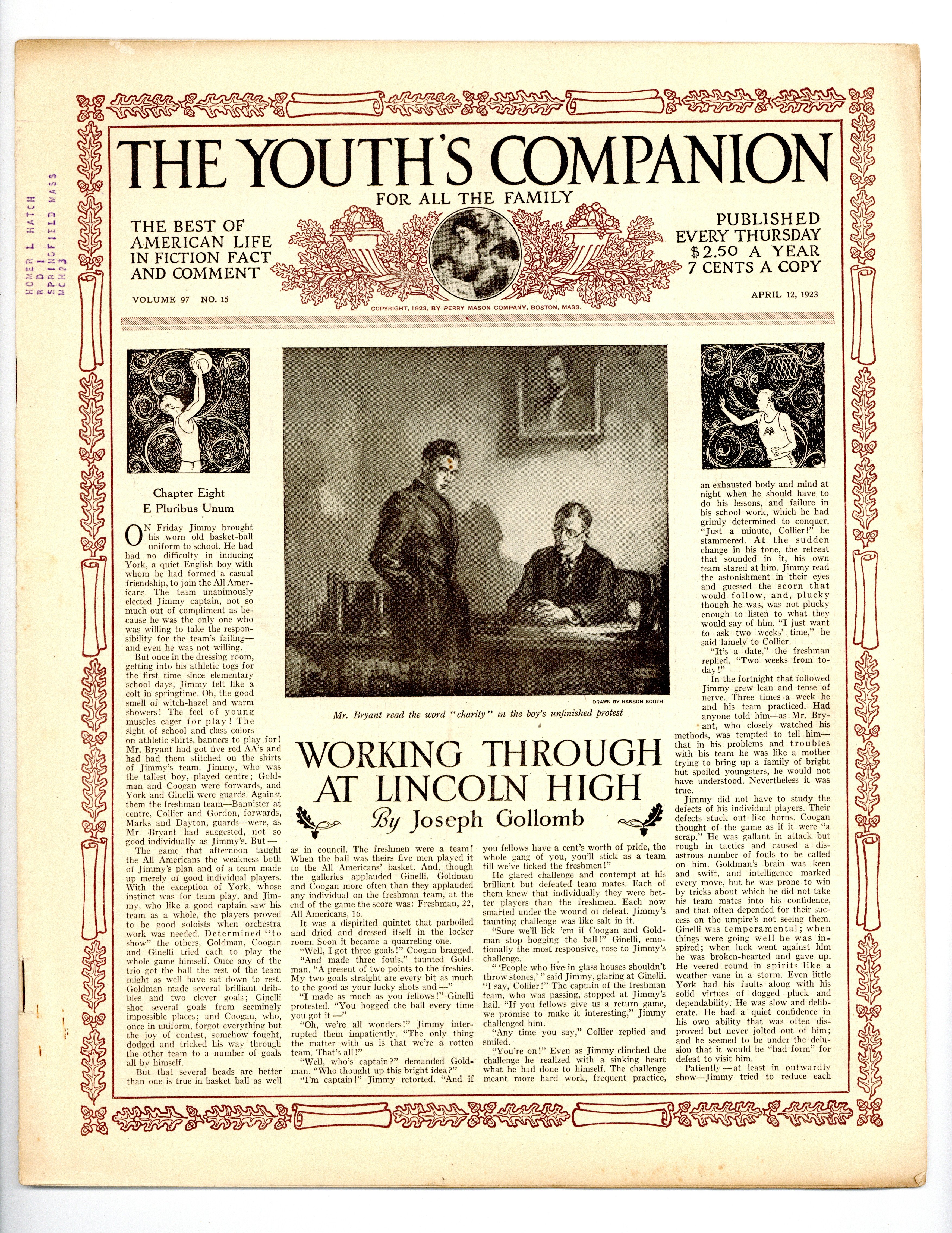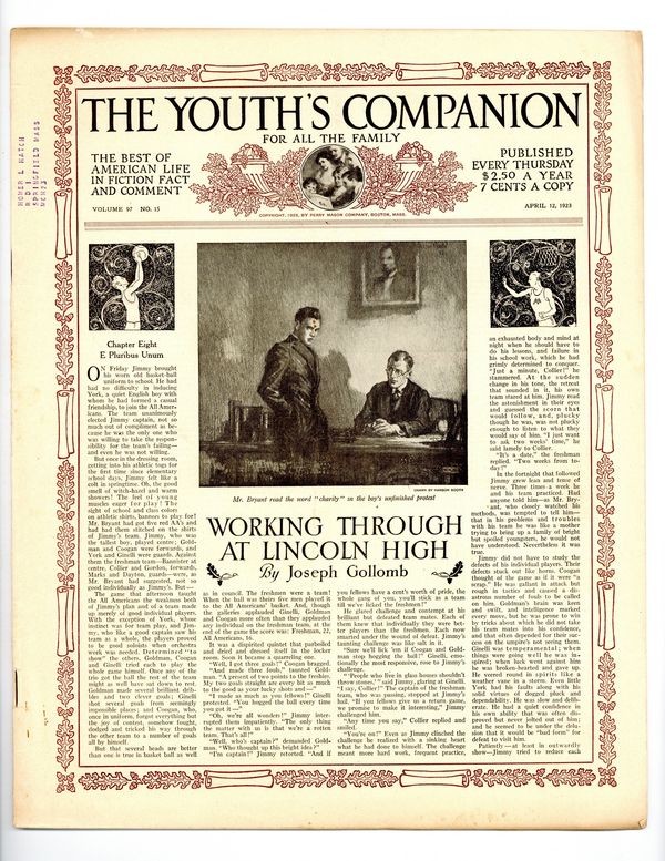 Published Apr 1923 by Perry Mason Company.$2.50Volume 97, Issue 15 - April 12, 1923. Cover by Hanson Booth. This issue's stories include; "The Gruer Order" by Lily Wandel, "Jonesy Sounds to Arms" by Edwin Cole, "Industrial Understanding" by J. Laurence Laughlin, "Pap's Bear Gum" by Charles Tenney Jackson, and more. 11" x 13.5", 16 pages, B&W. Cover price $0.07.