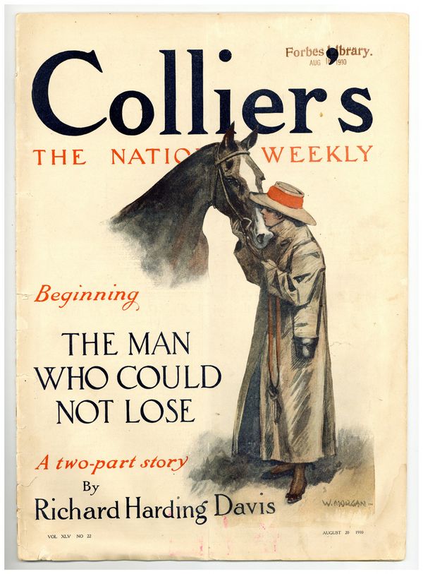 Volume 45, Issue 22 - August 20, 1910. Cover by Wallace Morgan. The classic weekly magazine featuring news and fiction. This issue's stories include; "The Man Who Could Not Lose" by Richard Harding Davis, "The Passing of Tommy Atkins" by Genevieve Kennedy, "The Secret Little Trades" by Edith Wyatt, and "Women's Political Methods" by Frances M. Bjorkman, Illustrations by Wallace Morgan and Laura Foster. 10.75" x 15", 26 pages, B&W.