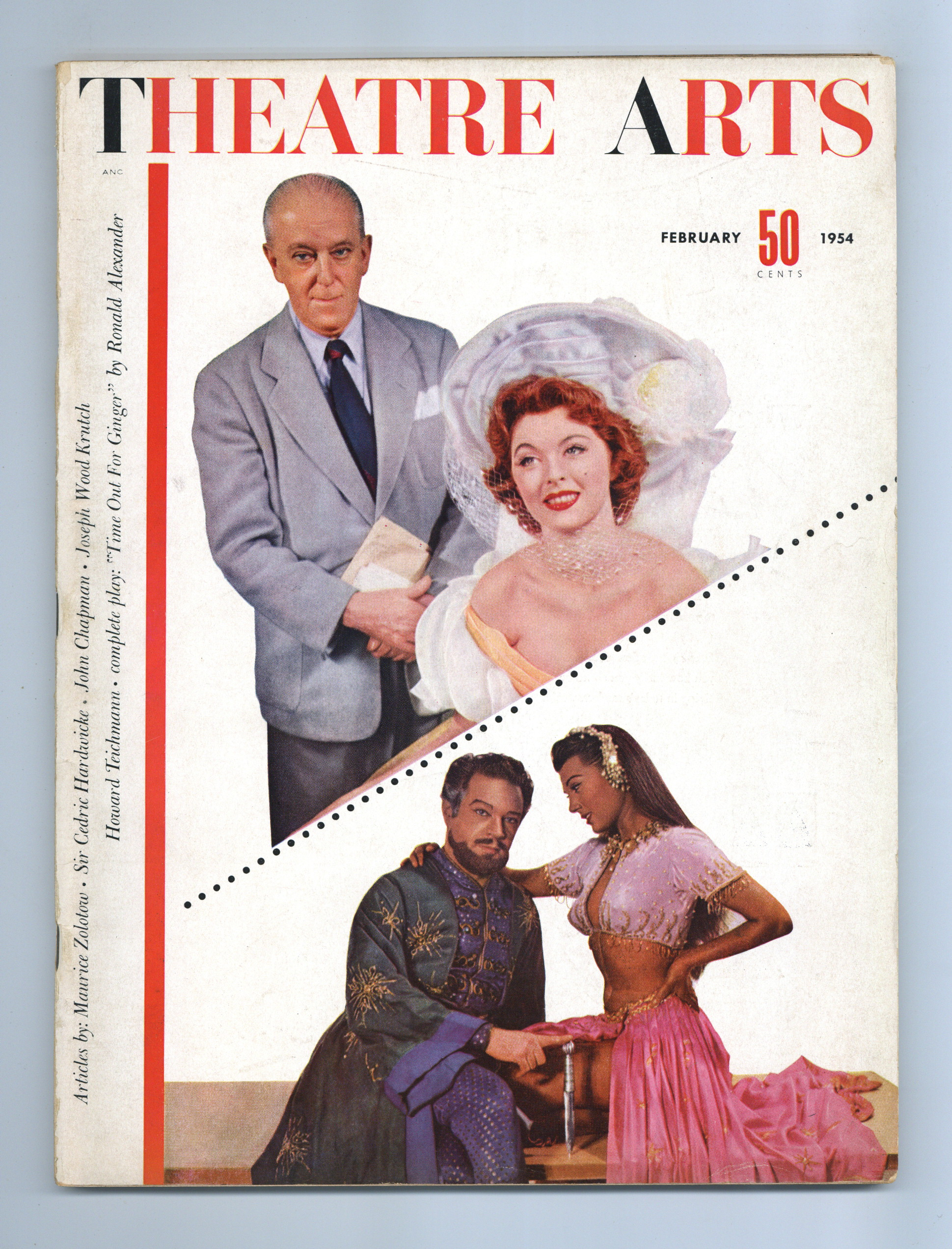 Published Feb 1954 by Theatre Arts, Inc..$2.50Volume 38, Issue 2 - February, 1954. Brooks Atkinson, Tina Louise, Doretta Morrow and Alfred Drake photo cover. Theatre Arts Monthly is legendary for its thorough and insightful coverage of the stage, both in American and England. Less well-known is the fact that TAM also provided some outstanding coverage of motion pictures, Broadway and Hollywood. This issue includes a complete version of "Time Out for Ginger" by Ronald Alexander, as well as articles by Maurice Zolotow, Sir Cedric Hardwicke, John Chapman, Joseph Wood Drutch, Howard Teichmann, more. 8.5" x 11", 96 pages, B&W. Cover price $0.50.