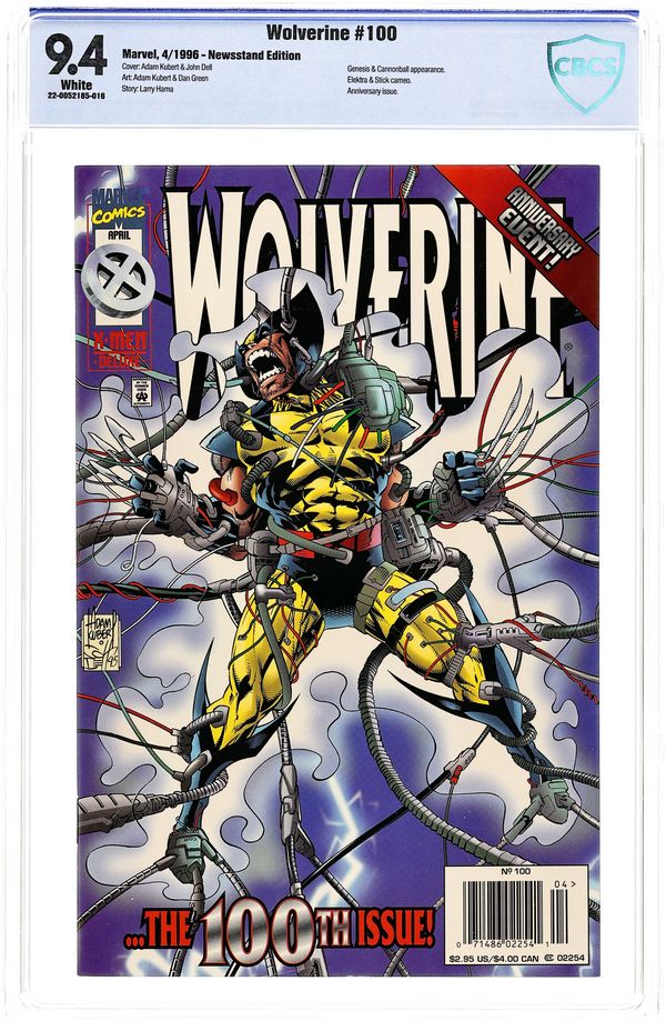 Non Holofoil. Newsstand Edition. Cover pencils by Adam Kubert, inks by John Dell. Furnace Of His Brain, Anvil Of His Heart, script by Larry Hama, pencils by Adam Kubert, inks by Dan Green; Genesis attempts to bond Cyber's adamantium to Wolverine's bones and turn him into a new horseman of death for the soon to be resurrected Apocalypse; Wolvie resists and with a little help from Cannonball takes out Tyler and the Dark Riders, most of whom die in the process; Wolvie is free, still adamantium-less but has changed into a bestial creature with a childlike intellect and a surly disposition. 52 pgs. $2.95. Cover price $2.95.