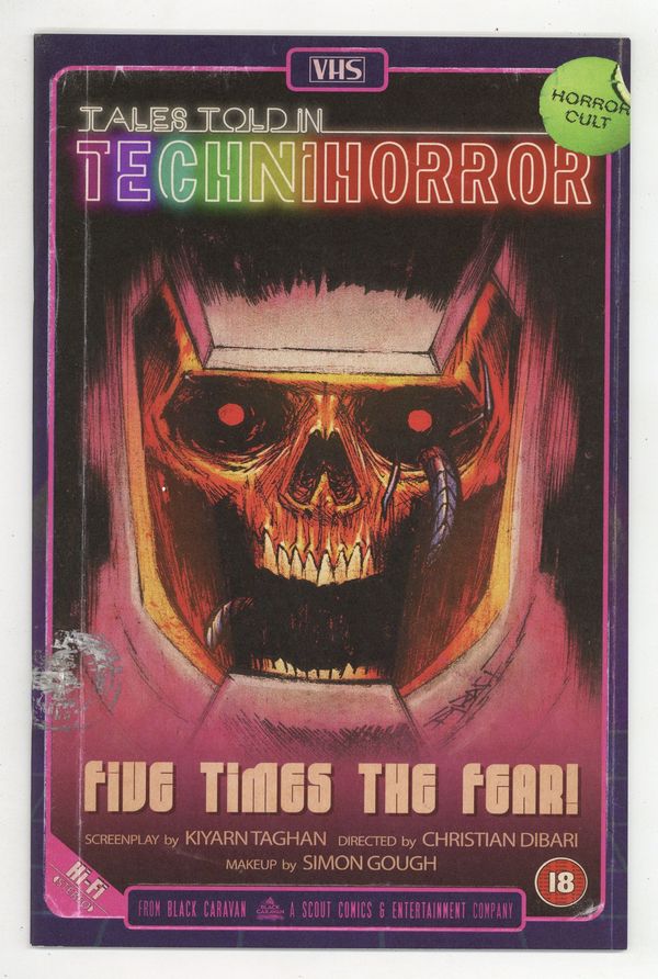 Published Jun 2021 by Scout Comics.$9.60Written by Kiyam Taghan. Art and Cover by Christian DiBari. Black Caravan Imprint: Tales Told In Techni-Horror is a biennial horror series that blends the best in horror sub genres (body shock to grindhouse and more). Each issue contains five short stories from the dark minds that brought you Provenance of Madness. Includes a mini pinup gallery of horrors. 32 pages, full color. Cover price $3.99.