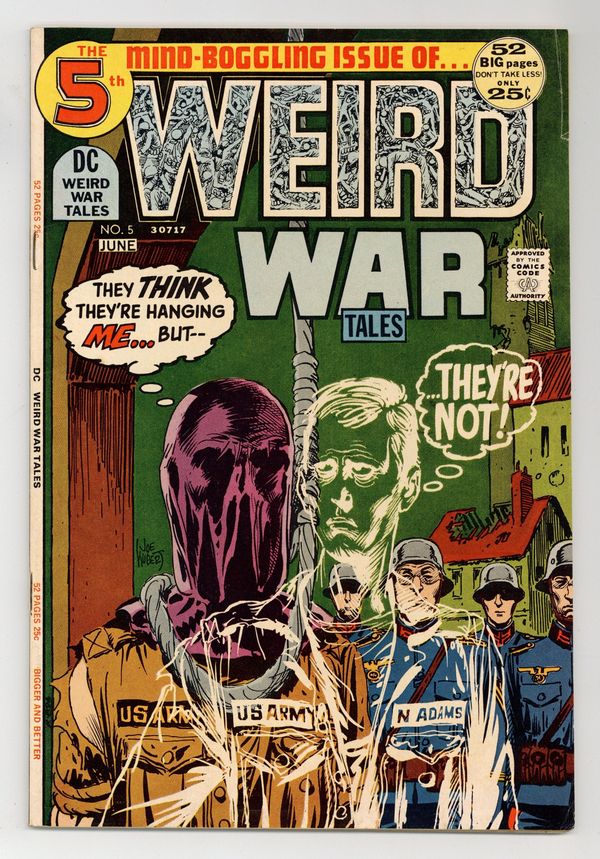 Joe Kubert cover featuring a ghost soldier named "N. Adams" -- a nod to Neal? The Prisoner, script by Bob Haney, art by Alex Toth; story set in December 1944, Northern Italy. The Toy Jet!, script by Bob Haney, art by Russ Heath. Human Trigger!, script by France Herron, pencils by Ross Andru, inks by Mike Esposito. Infantry...Queen of Battle--Table-Top Dioramas by Sam Glanzman. Face a Firing Squad!, script by France Herron, art by Carmine Infantino. Corporal Gerry Kisters--Medal of Honor, script and art by Norman Maurer. Slave, script by Willi Franz, art by Russ Heath. This Is It!, script by Bob Haney, art by Alex Toth. 52 pgs. $0.25. Cover price $0.25.