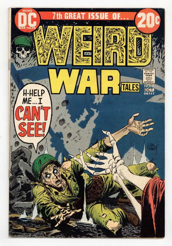Cover art by Joe Kubert. Out of Action, script by Marv Wolfman, art by Joe Kubert. Flying Blind, script by William Woolfolk, pencils by Jerry Grandenetti, inks by Joe Giella. The 50-50 War!, script by Robert Kanigher, art by Joe Kubert. Military Hall of Fame fact page by John Costanza. The Three GIs!, script by Bill Finger, art by Russ Heath. I Can't See, script by Marv Wolfman, art by Joe Kubert. 36 pgs. $0.20. Cover price $0.20.