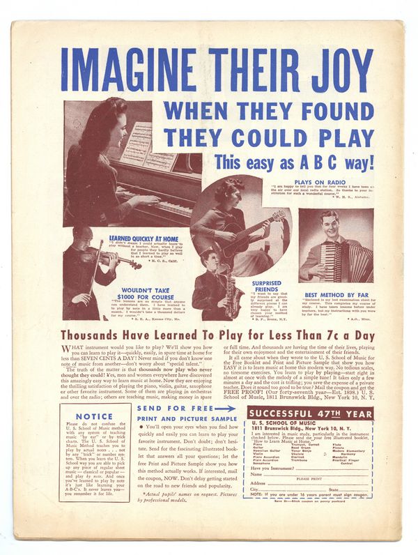 Published Nov 1945 by Charlton Publishing.$8.00- Spine split 5%. Water damage: Moderate. Staple rust: Slight.