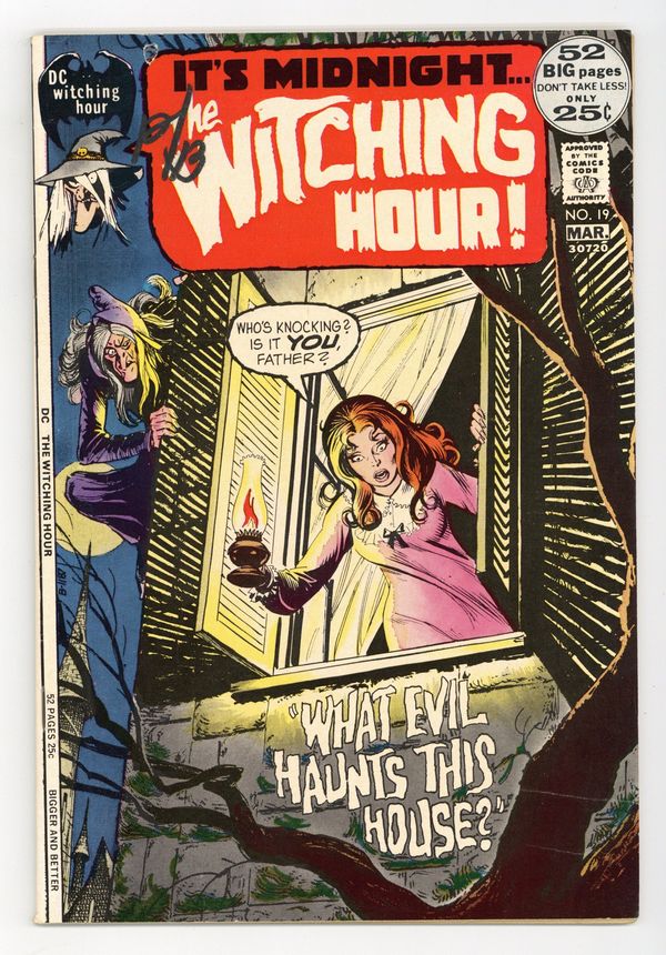 52-page giant. Featuring: 1 page The Three Witches introductory story starring Cynthia, Mildred and Mordred; 8 page story "A Tomb For The Living!" written by Jack Phillips and pencilled by Jerry Grandenetti; 6 page reprint story "The Four Threads of Doom" pencilled by Nick Cardy; 8 page story "Stop Beating, Heart! You're Killing Me!" pencilled by George Tuska; 5 page reprint story "The Lamp That Changed People!" drawn by Nick Cardy; 9 page story "What Evil Haunts This House?" written by George Kashdan and drawn by Lee Elias. Cover by Nick Cardy. 52 Pages, Full Color. Cover price $0.25.