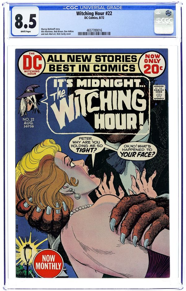Featuring: 1 page The Three Witches introductory story drawn by John Calnan; 8 page story "13 Rue Morgue!" drawn by John Calnan and Jack Abel; 6 page story "The Haunted Hands of Guilt" written by Bill Dennehy and drawn by J. Winslow Mortimer; 8 page story "Pity Me...Please, Please Kill Me!" drawn by Bob Brown and Dan Adkins. Cover by Nick Cardy. 36 Pages, Full Color. Cover price $0.20.