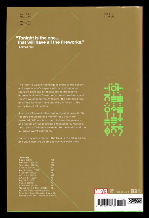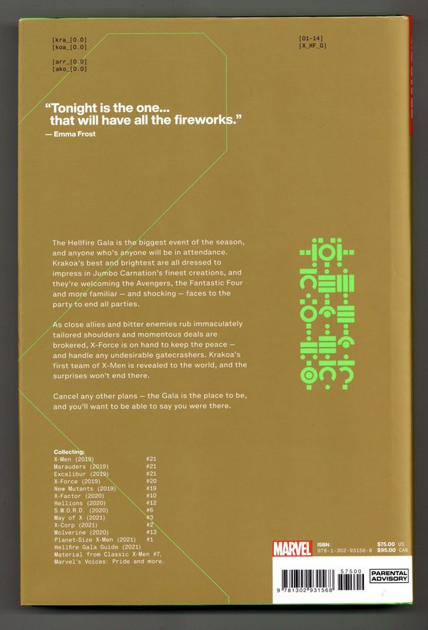 The X-Men are rolling out the red carpet for the biggest Krakoan event of the season - and this high-class hardcover details every drink, dance, dalliance and deception at the Hellfire Gala! Featuring appearances by the Avengers, Fantastic Four, Doctor Strange, Doctor Doom, and many celebrities and faces of pop culture!