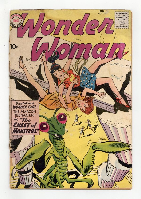 Cover pencils by Ross Andru, inks by Mike Esposito. "The Chest of Monsters," script by Robert Kanigher, pencils by Ross Andru, inks by Mike Esposito; Wonder Woman announces a contest which awards the boy or girl who brings the most credit to America three wishes. It's Fun to Help Others public service announcement starring Superboy, script by Jack Schiff, pencils by Curt Swan. The Brave and the Bold #28 ad. "The Chest of Monsters, Part 2," script by Robert Kanigher, pencils by Ross Andru, inks by Mike Esposito; On Paradise Island, Bonnie is given an Amazon outfit and is made an honorary Amazon; She gets to watch as the Amazons compete in an obstacle race. "The Chest of Monsters, Part 3," script by Robert Kanigher, pencils by Ross Andru, inks by Mike Esposito; Bonnie asks to meet Mer-Boy, so she and Wonder Girl put on Amazon diving suits and go for a dive; Mer-Boy takes them exploring around a sunken ship where he finds a treasure chest and an octopus. 36 pages, Full Color. Cover price $0.10.