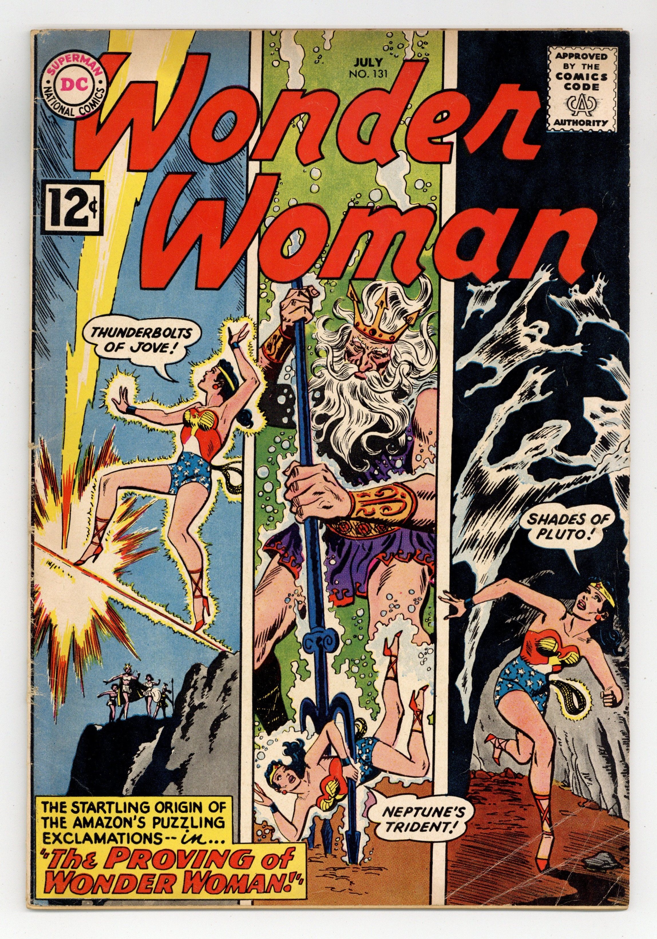 Cover pencils by Ross Andru, inks by Mike Esposito. "The Proving of Wonder Woman," script by Robert Kanigher, pencils by Ross Andru, inks by Mike Esposito; Once a year Wonder Woman must prove herself worthy to remain the Amazon's champion in Man's world. Be a Good Citizen public service announcement starring Superman, script by Jack Schiff, art by Sheldon Moldoff. "Wonder Queen's Surprise Birthday Gift," script by Robert Kanigher, pencils by Ross Andru, inks by Mike Esposito; Wonder Woman forgets to bring a gift for her mother's birthday so she and Mer-Man have to sneak off and find one. 36 pages, Full Color. Cover price $0.12.