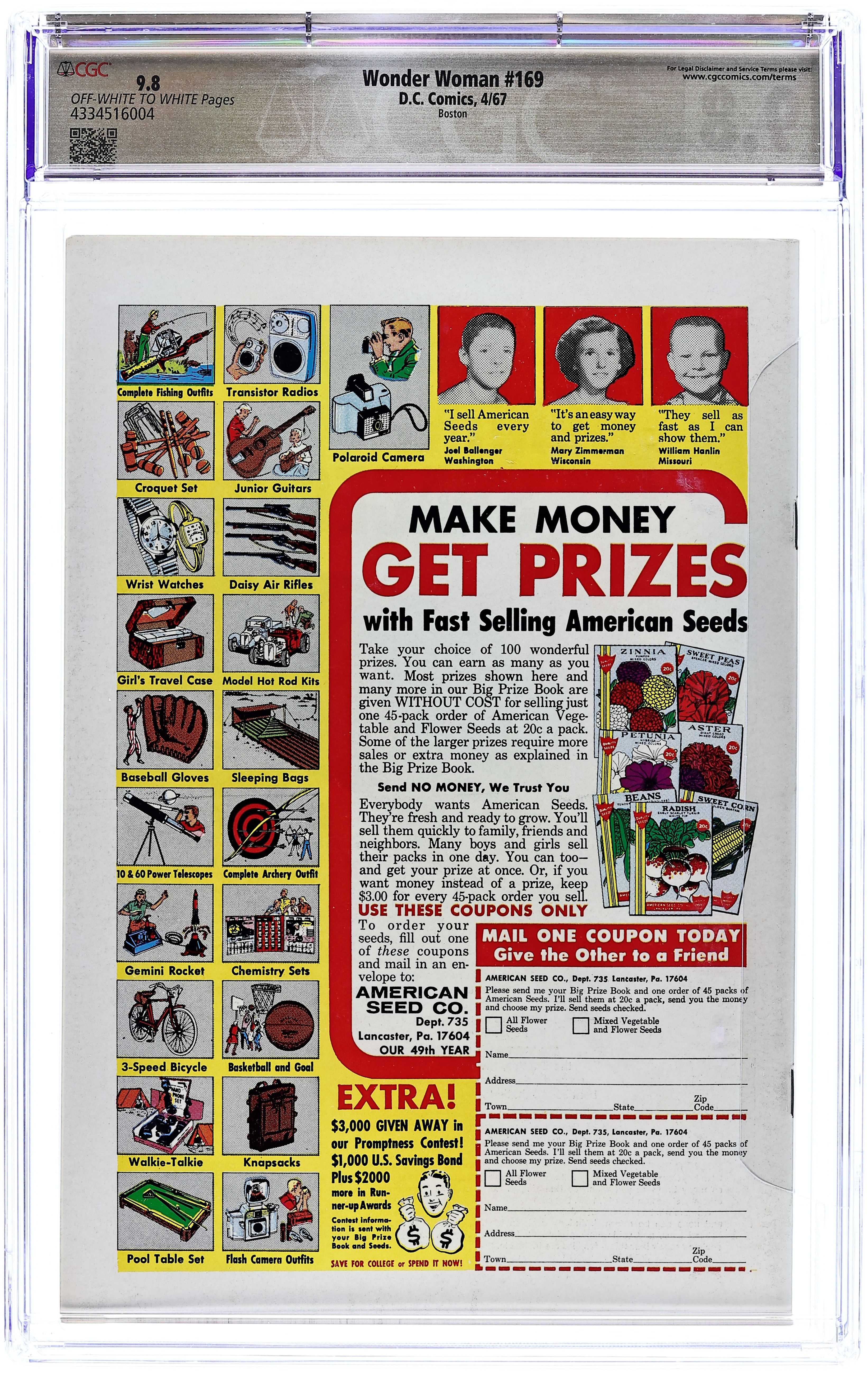 Cover pencils by Ross Andru, inks by Mike Esposito. "Wonder Woman Battles the Crimson Centipede," script by Robert Kanigher, pencils by Ross Andru, inks by Mike Esposito; Mars unleashes his latest creation at Wonder Woman, a super-villain called the Crimson Centipede. "The Cage of Doom," script by Robert Kanigher, pencils by Ross Andru, inks by Mike Esposito; To make Steve Trevor jealous, Wonder Woman agrees to date General Darnell... and it succeeds. 36 pages, Full Color. Cover price $0.12.