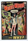 Tags: Wonder Woman$25.00"Detour 2." Continued from last issue; continued next issue. (Note: This story is six pages of new material wrapped around an edited reprint of issue #179.) Written and pencilled by Mike Sekowsky, with inks by Dick Giordano. Characters: Wonder Woman; I-Ching; Ranagor the Barbarian; Steve Trevor. Cover by Mike Sekowsky and Dick Giordano. 36 pages, Full Color. Cover price $0.15.