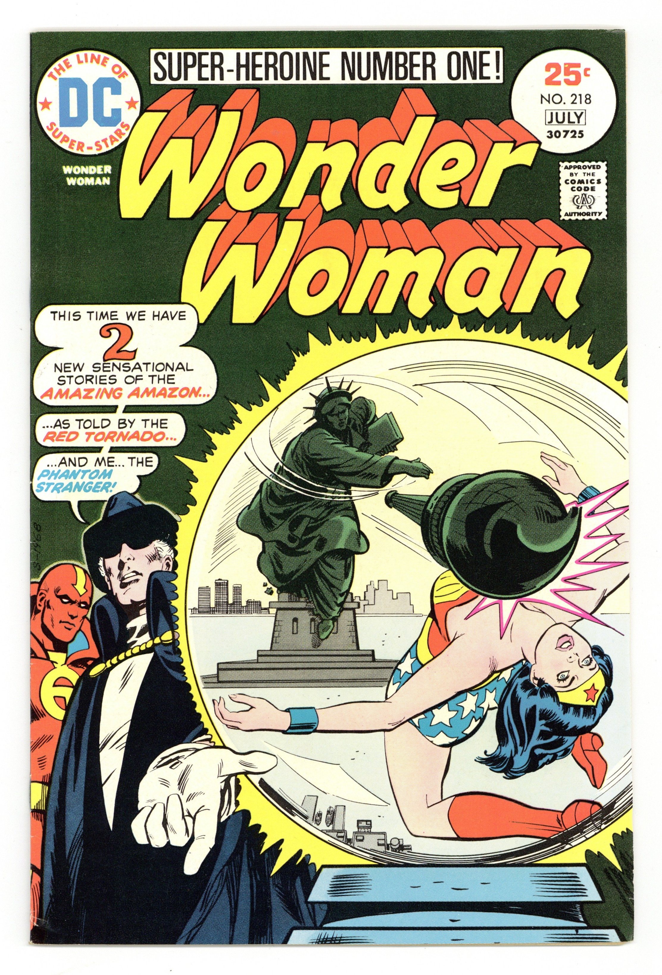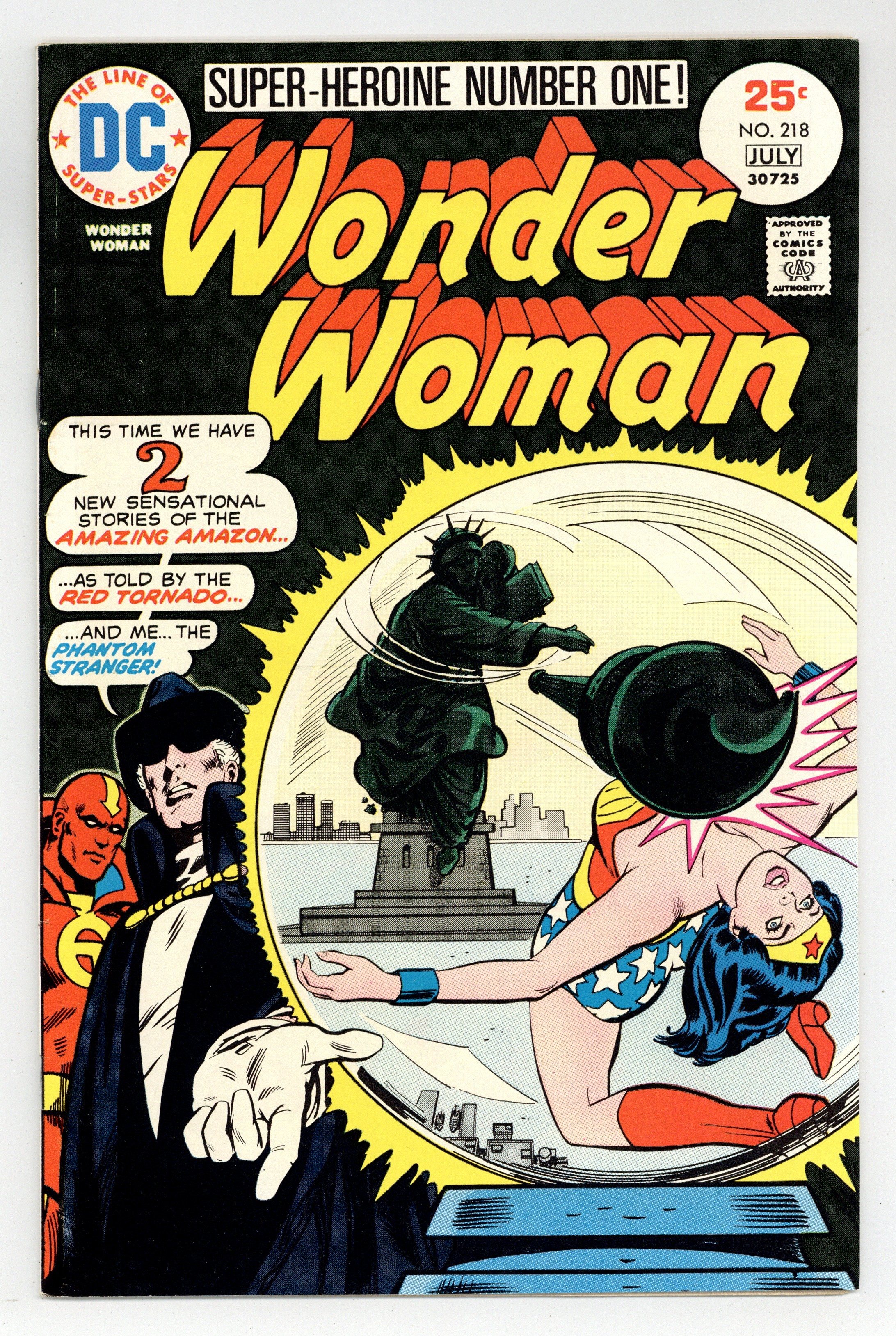 Cover by Bob Oksner. "Revolt of the Wonder Weapons," script by Martin Pasko, art by Kurt Schaffenberger; Red Tornado observes Wonder Woman's 7th mission, as an astrologer taps into Diana's mental powers, and uses them to disrupt her ability to use her weapons. "Give Her Liberty - and Give Her Death!", script by Martin Pasko and David Michelinie (script consultant), art by Kurt Schaffenberger; The Phantom Stranger observes Wonder Woman's 8th mission, as she must stop Felix Faust from stealing the Statue of Liberty. Statement of ownership - average print run 332,820; average paid circulation 147,333. Superman stars in a one-page Hostess ad, "The Spy." 36 pages, Full Color. Cover price $0.25.