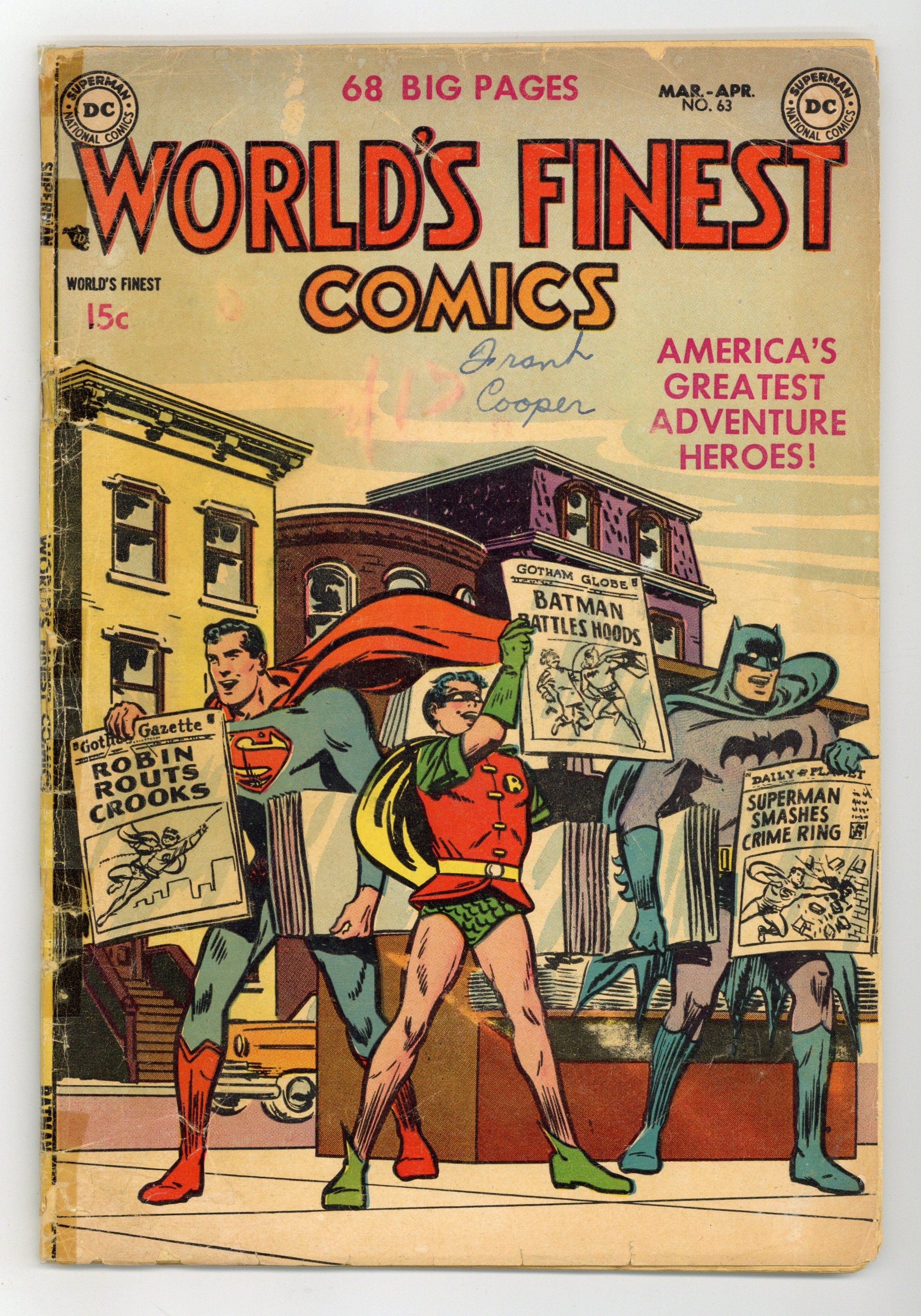 Cover art by Winslow Mortimer. Clark Kent, Gangster starring Superman, pencils by Wayne Boring, inks by Stan Kaye. Jerry the Jitterbug humor half-pager by Henry Boltinoff. Little Pete humor page by Henry Boltinoff. Archers of Yesteryear starring Green Arrow, art by George Papp. Good Neighbor Spirit public service announcement starring Binky, script by Jack Schiff, art by Win Mortimer. The Ship of Crime starring Captain Compass, art by Joe Certa. Varsity Vic humor two-pager by Henry Boltinoff. The Comanche Conspiracy starring the Wyoming Kid, script by Don Cameron, art by Howard Sherman. House ad for current issues of Tomahawk and Buzzy. Peg humor page by Henry Boltinoff. Hunters in the Deep-Sea text article, script by Jack Miller, art by Raymond Perry. The Crime Capsule starring Batman, pencils by Bob Kane (Batman & Robin figures) and Lew Sayre Schwartz, inks by Charles Paris. 68 Pages, Full Color. Cover price $0.15.