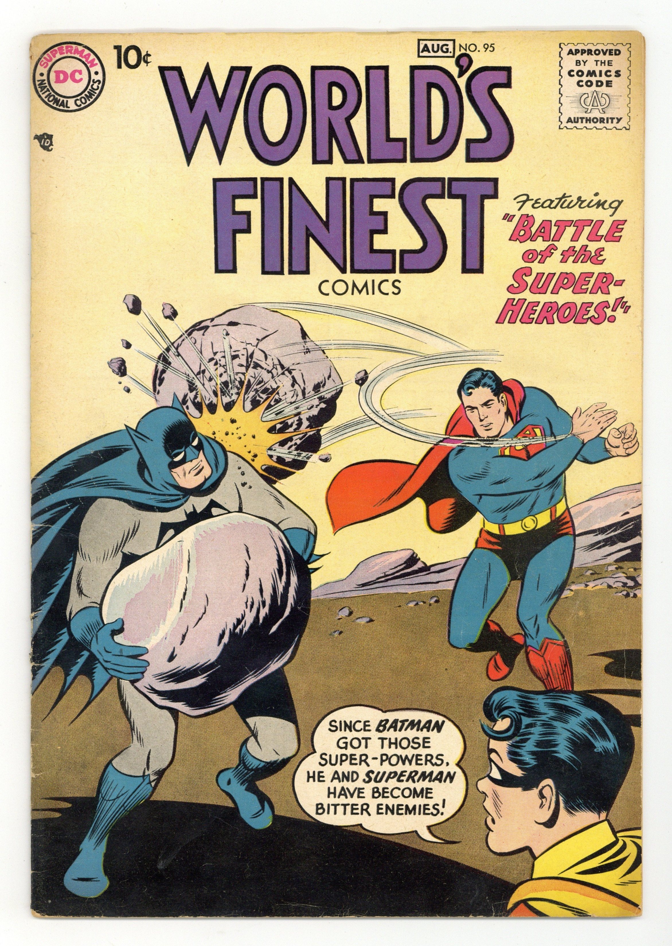 Cover pencils by Curt Swan, inks by Stan Kaye. Are You a Litter Bug? public service announcement starring Little Pete, script by Jack Schiff, art by Henry Boltinoff. The Battle of the Super-Heroes starring Superman and Batman, script by Dave Wood, pencils by Dick Sprang, inks by Ray Burnley; Alien gamblers give Batman super-powers as part of a bet. Ollie humor two-pager by Henry Boltinoff. The Indian Troubadour starring Tomahawk, art by Fred Ray. Tasteful Triumph text article; history of the ice cream cone. Green Arrow Vs. the Red Dart, art by George Papp; John Mallory pretends to be the superhero Red Dart to prevent Green Arrow and Speedy from stopping his gang's crime spree. 36 Pages, Full Color. Cover price $0.10.