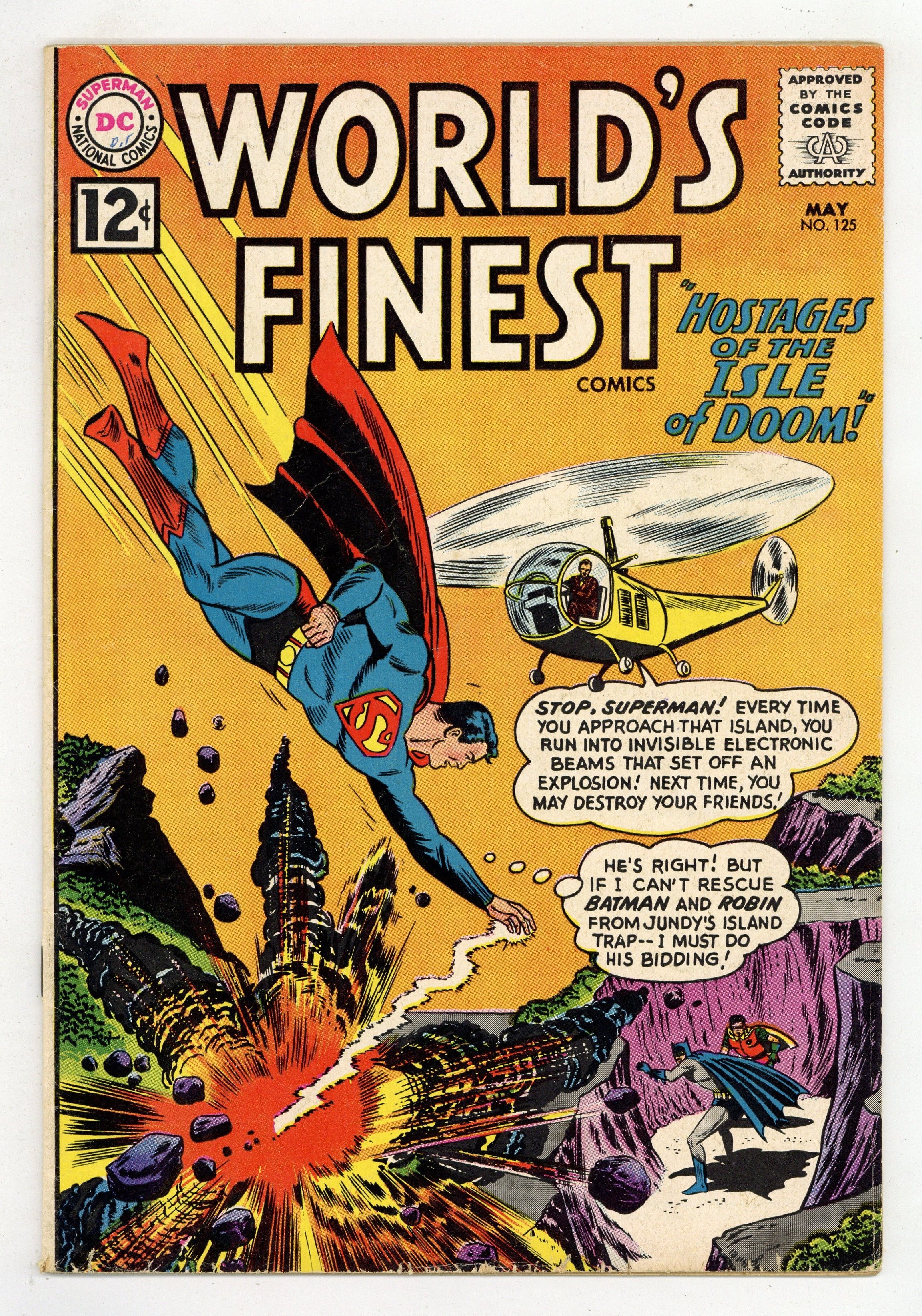 Cover pencils by Dick Dillin, inks by Sheldon Moldoff. The Hostages of the Island of Doom starring Superman and Batman, script by Jerry Coleman, art by Jim Mooney; Jundy kidnaps Batman and Robin and transports them to his Island of Doom where he threatens to kill them unless Superman finds all the parts of an ancient magic scepter for him. Homer humor page by Henry Boltinoff. The Man Who Defied Death starring Green Arrow, script by Ed Herron, art by Lee Elias; Fred Jenkins will take any job no matter how dangerous to raise money for his son's operation. Aquaman's Super Sidekick, script by Jack Miller, art by Nick Cardy; Aquaman pretends Aqualad has super powers to protect him from criminals. 36 Pages, Full Color. Cover price $0.12.