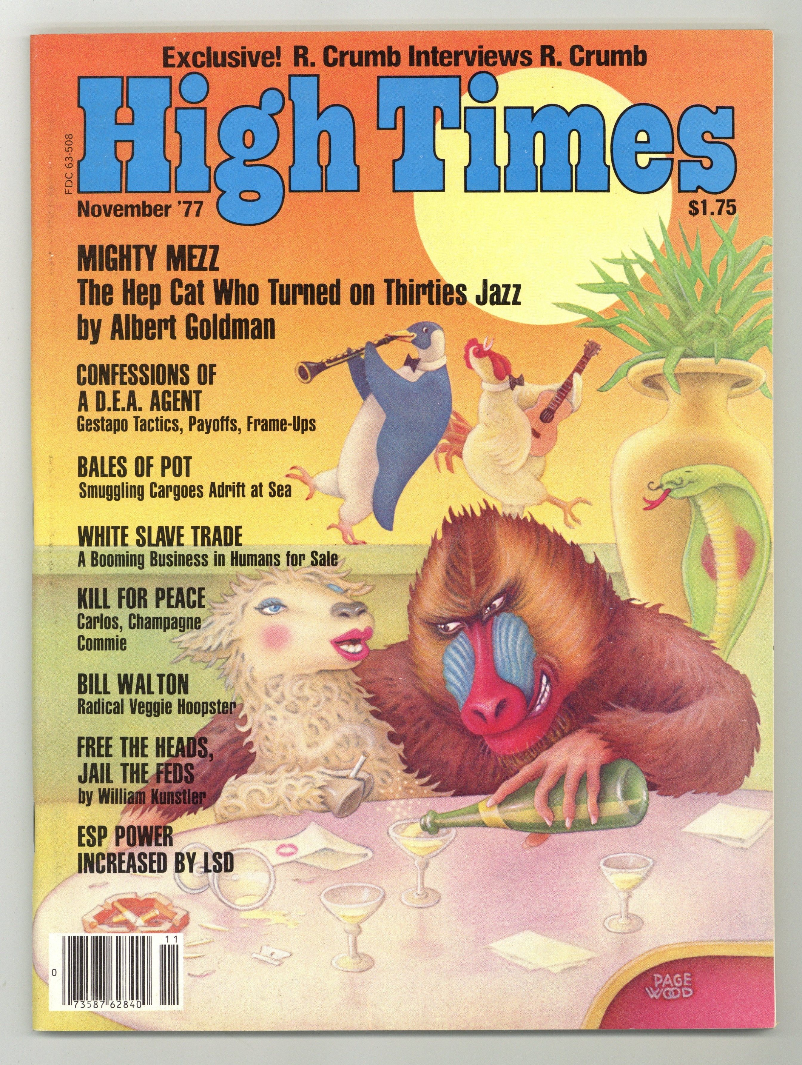 Issue 27 - November, 1977. Cover artwork by Page Wood. Magazine devoted to a marijuana based counter-culture. In this issue: "Interview: R. Crumb" by Robert Crumb, "The Mighty Mezz" by Albert Goldman, "Confessions of a DEA Agent" by Susan Wyler, "Better Telepathy Through Chemistry" by D. Scott Rogo, "Carlos" by Steve Long, and much more. 8-in. x 11-in., 118 pages, B&W and partial color. -MATURE READERS- Cover price $1.75.