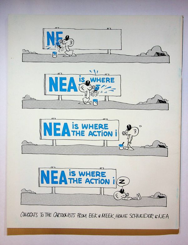 The Cartoonist Reuben Awards Dinner Program (1968) is published by King Features. The National Cartoonist Society gathers to honor it's best and brightest members of the year. Also included are articles by world famous cartoonist such as Rube Goldberg, Jack Tippit, and many more. 60 pages, color cover with black and white illustraions and photos, 8.50-in x 11-in.
