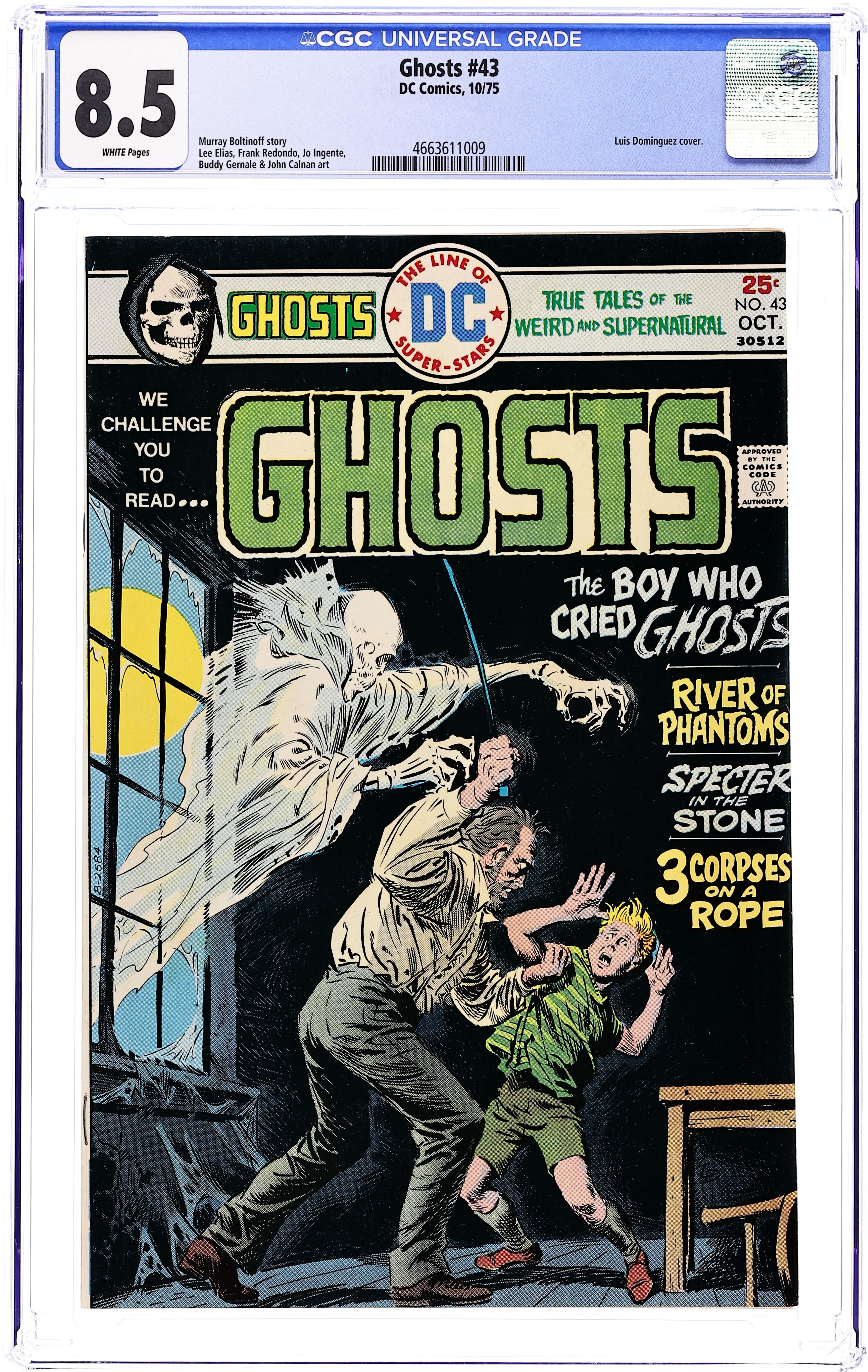 Cover by Luis Dominguez. Featuring: 1 page intro story "Ghosts and the Supernatural" written by Murray Boltinoff and drawn by John Calnan; 6 page story "The River of Phantoms" written by Carl Wessler and drawn by Frank Redondo; 3 page story "The Boy Who Cried Ghosts" drawn by Buddy Gernale; 2 page story "Specter in the Stone" written by Carl Wessler and drawn by Jo Ingente (as J.B. Ingento); 6 page story "3 Corpses on a Rope" written by Carl Wessler and drawn by Lee Elias; 1 page text story "Home, Sweet Haunted Home" by Murray Boltinoff. Cover price $0.25.