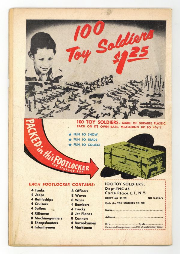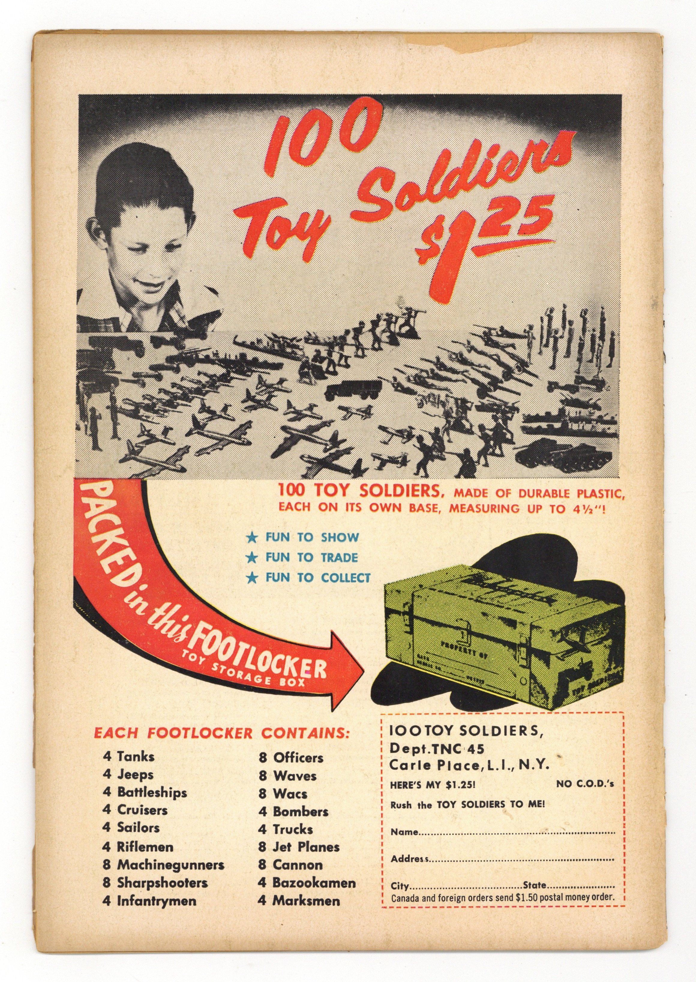 Starts Jan 3 Cover art by Bruno Premiani. The Doom Patrol (Chapter 1), script by Arnold Drake and Bob Haney, art by Bruno Premiani; A mysterious man known only as the Chief calls three people who have all escaped certain doom but were left outcasts because of their experiences. Peter Puptent Explorer humor page by Henry Boltinoff. The Challenge of the Timeless Commander (Chapter 2), script by Arnold Drake and Bob Haney, art by Bruno Premiani; The Chief informs the Doom Patrol of an alien spaceship that has landed on Earth carrying a super-weapon. Science Shorts filler page by Henry Boltinoff. The Deadly Duel with Gen. Immortus (Chapter 3), script by Arnold Drake and Bob Haney, art by Bruno Premiani; After locating the super-weapon, the Doom Patrol is confronted by General Immortus, who takes the upper-hand. 36 Pages, Full Color. Cover price $0.12.