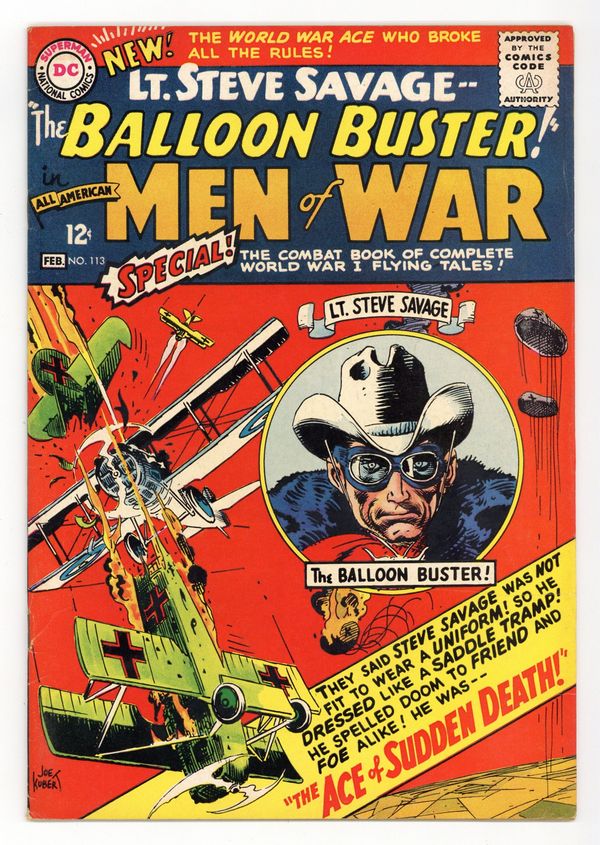 "The Ace of Sudden Death!" starring Lt. Steve Savage the Balloon Buster (art by Russ Heath). Back-up story, "What Price Ace!" (art by Gene Colan). Joe Kubert cover. 36 Pages, Full Color. Cover price $0.12.