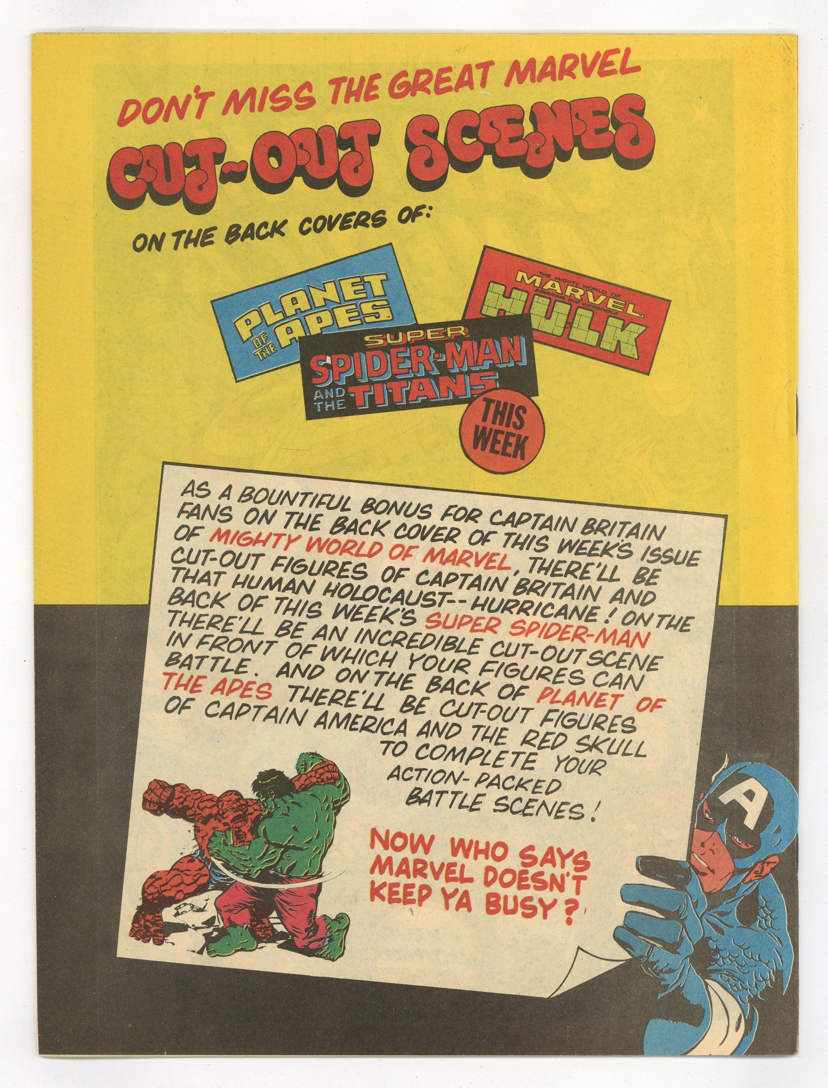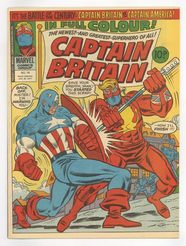 Captain Britian vs. Captain America. Magazine size weekly British edition comic published weekly by Marvel Comics International. 32 pages. Cover and 13 interior pages in full color, rest black and white.