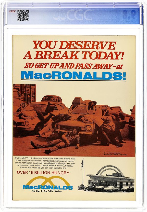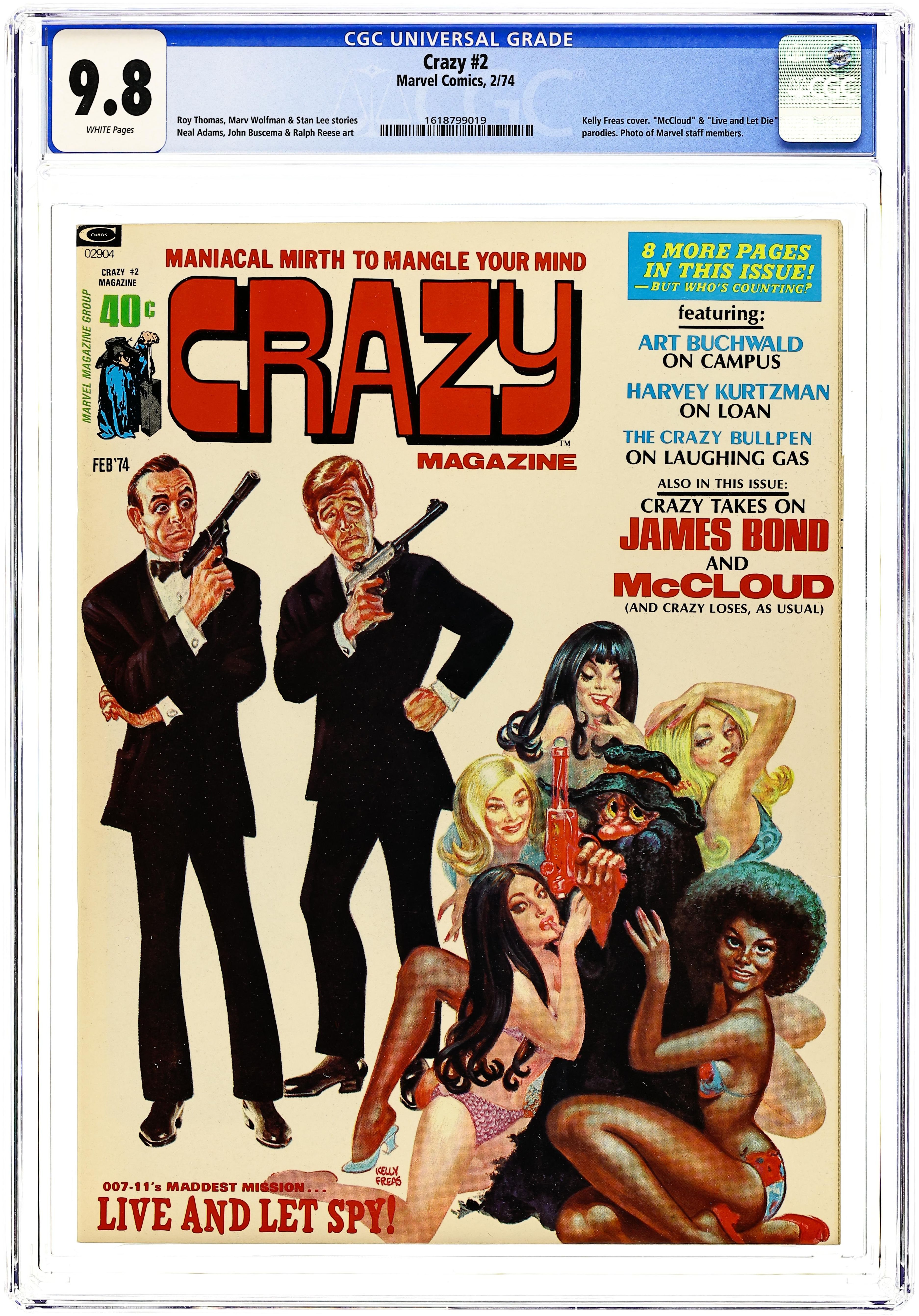 Painted cover art by Frank Kelly Freas. McClown, script by Marv Wolfman, art by Neal Adams. Crazy Looks at the Offices of a Parody Mag, art by Jack David. Crazy Looks at Baseball, script by Stan Lee. Kelly's Cockeyed Canvas starring Salvador Dali, art by Frank Kelly Freas. The Evolution and History of Moosekind, script and art by Bob Foster. Art Buchwald Dept. Part Two The Sensuous Student by B. Special Nostalgia Section--Hey Look, script and art by Harvey Kurtzman. Past Imperfect Dept., script by Steve Skeates, art by Larry Hama; Ralph Reese. Tomb it may concern Dept. Celebrities Cravestones, script by Marv Wolfman, art by Vic Martin. Live and Let Spy, script by Stu Schwartzberg and Roy Thomas, pencils by John Buscema, inks by The Crusty Bunkers. 52 pgs. $0.40. Cover price $0.40.